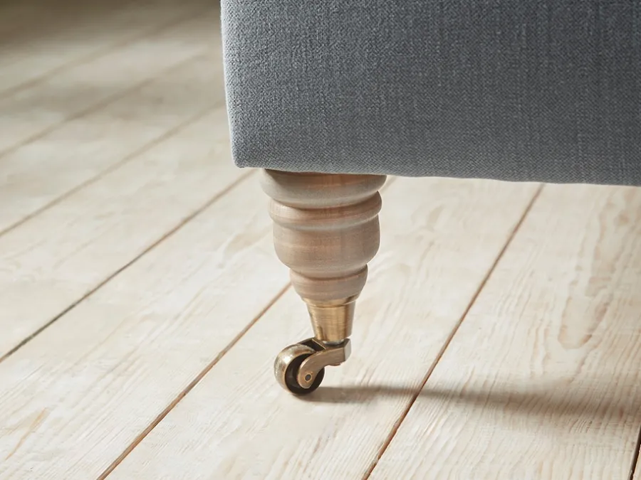 The dramatic buttoned back curves around the seat to create a cosy appeal while hand turned legs on castors complete the luxurious look.