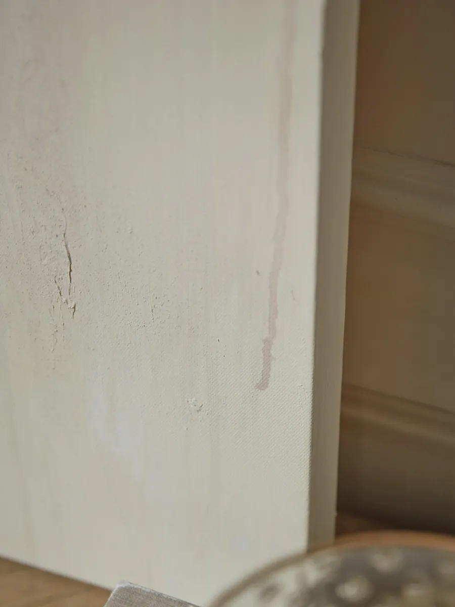 A soft grey cascades down a neutral toned canvas creating a waterfall effect on the painting.