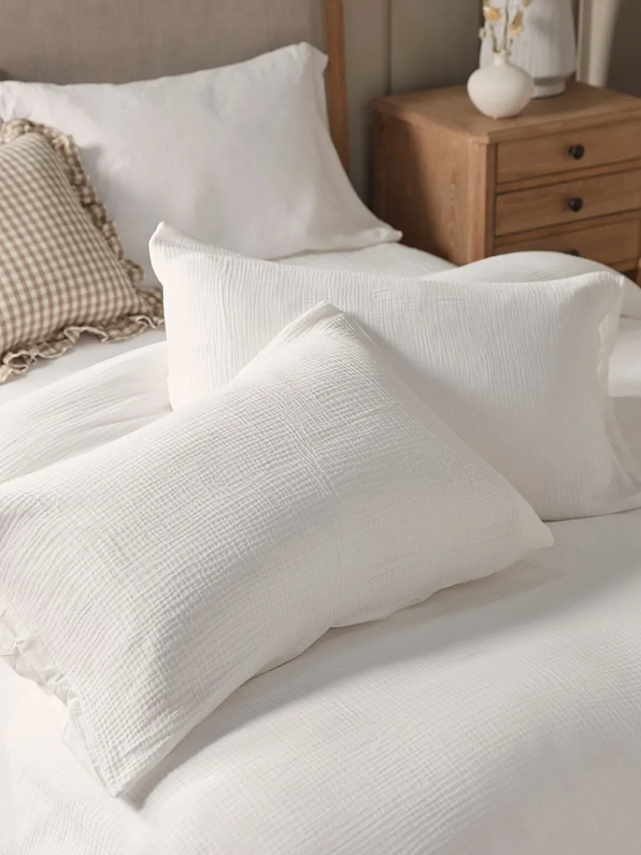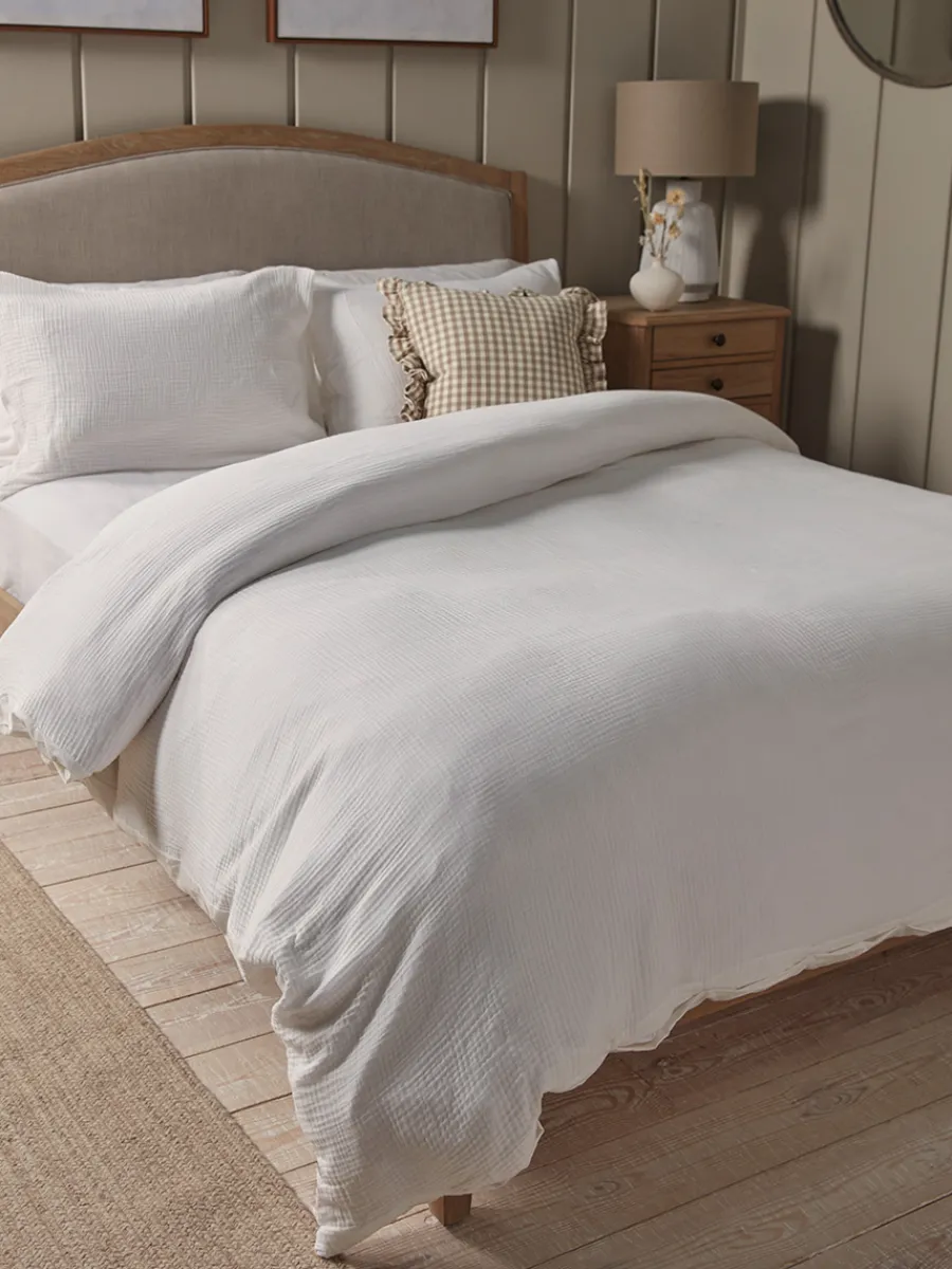 Crafted in a supersoft cotton, this bright white duvet set is enhanced by its gentle waffled texture.