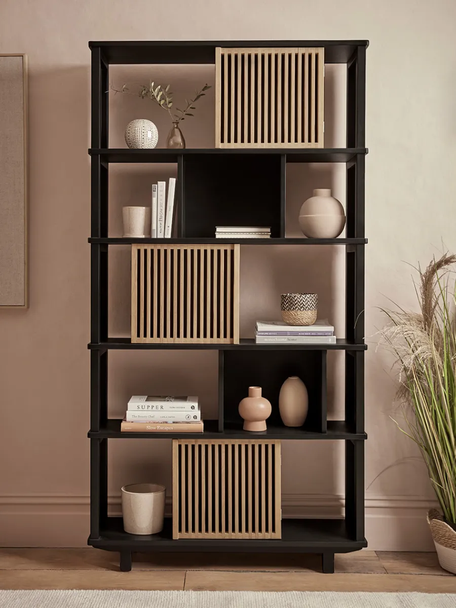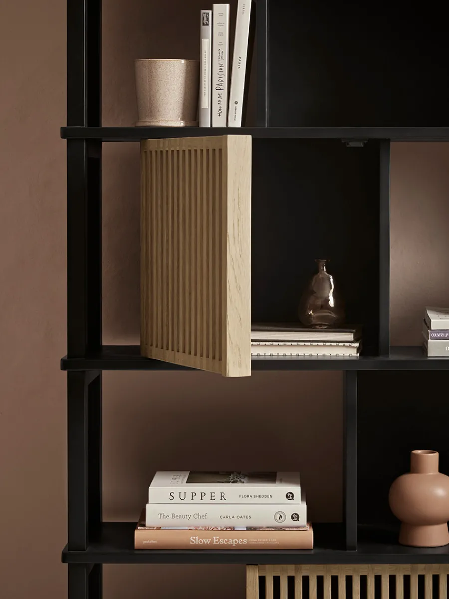 Perfect for a neutral and minimalist home, our Rainier Shelf Unit beautifully combines the light tones of oak with a dark painted wood for a modern and sophisticated contrast.
