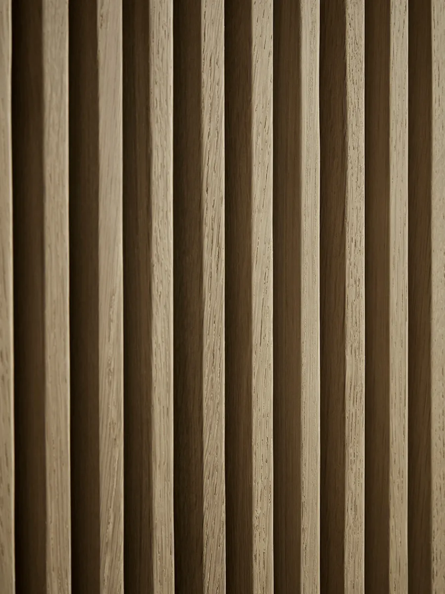 An asymmetrical arrangement of shelves, cubby holes and cupboards allows you to perfectly curate an arrangement of books and decorative ornaments, whilst also keeping less attractive items behind closed doors. The open shelves show off the colour of your walls beautifully, while the cubby holes add a contrast to the light oak cupboards which have slatted detailing, for a visually enticing finish.