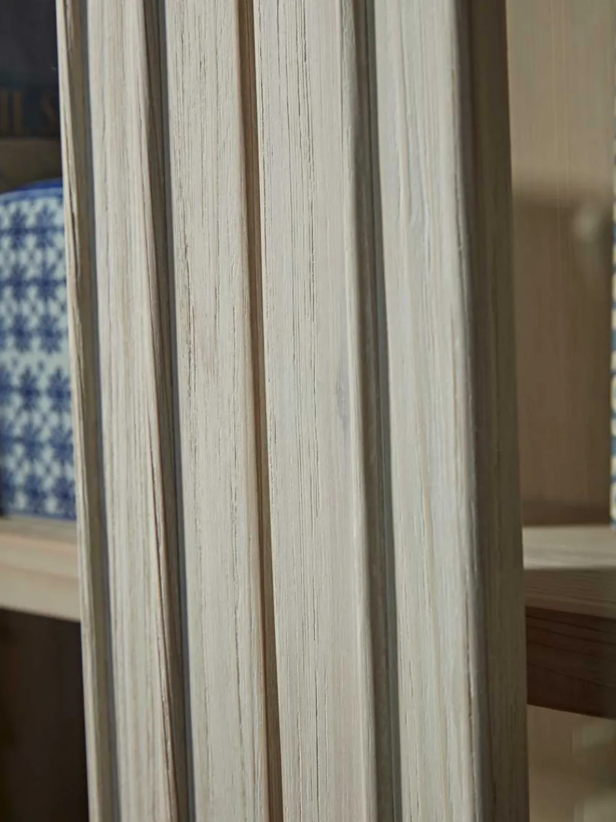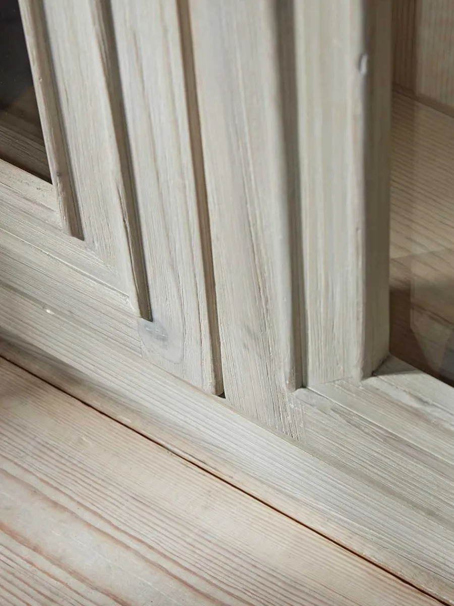 A sophisticated frame that exudes elegance works with the neutral tones of the wood to create a cabinet that is the perfect addition to our French Blue collection.