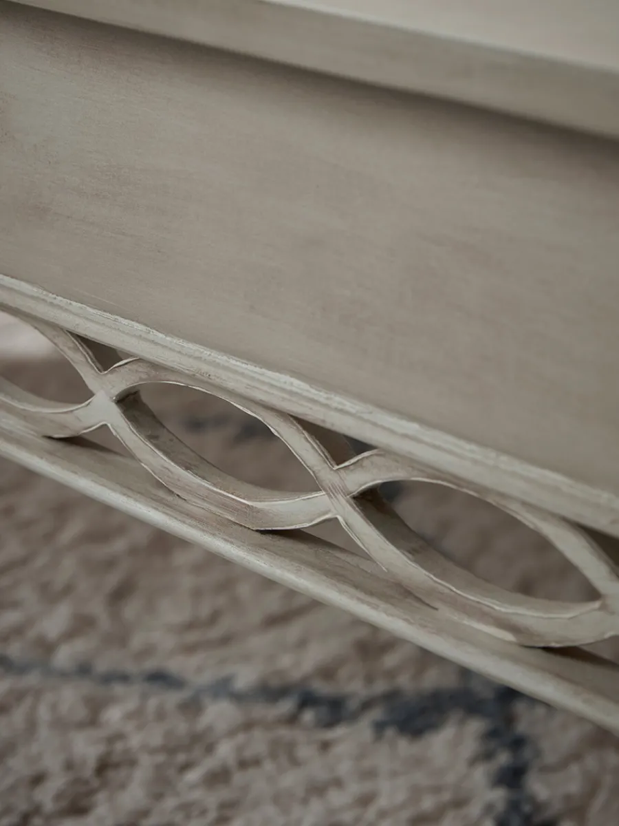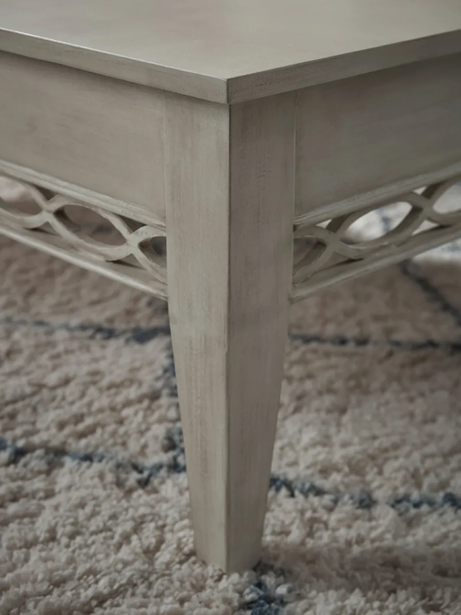 Perfect for a relaxed living room, our Tirana Coffee Table has a mellow whitewashed finish.
