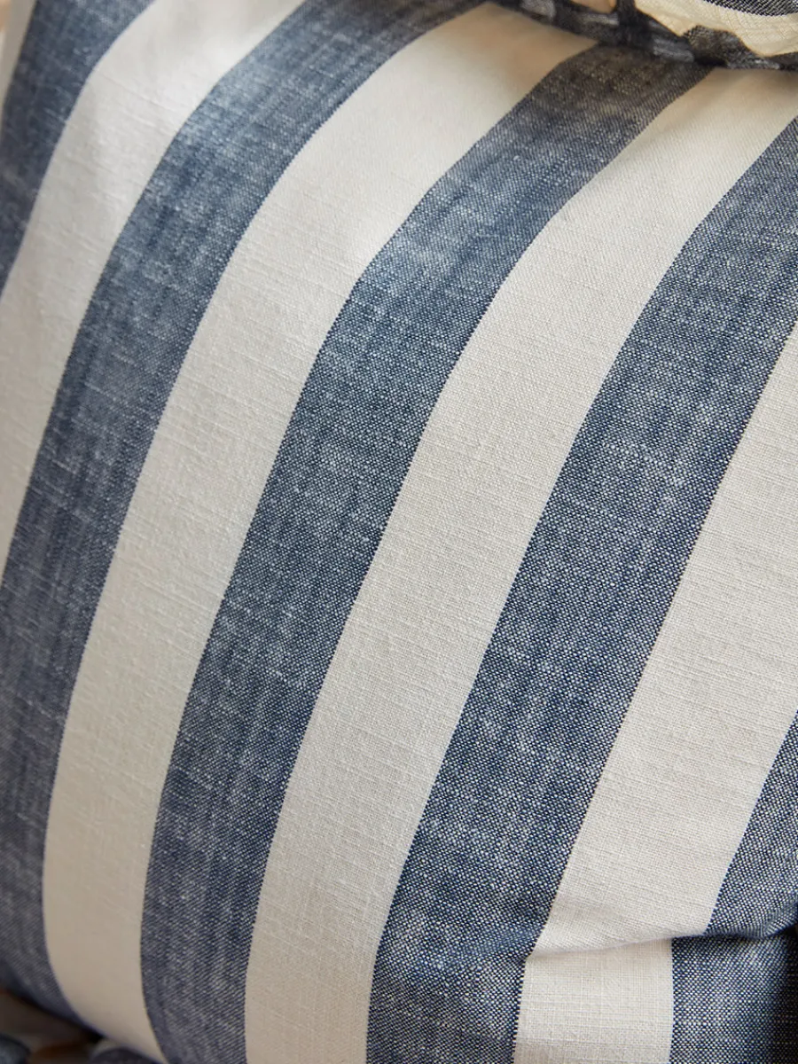 Timeless stripes in a calming blue tone grace this pillow for a cute and quaint design to add to your sofa, armchair or bed for a cosy and heart warming finish.