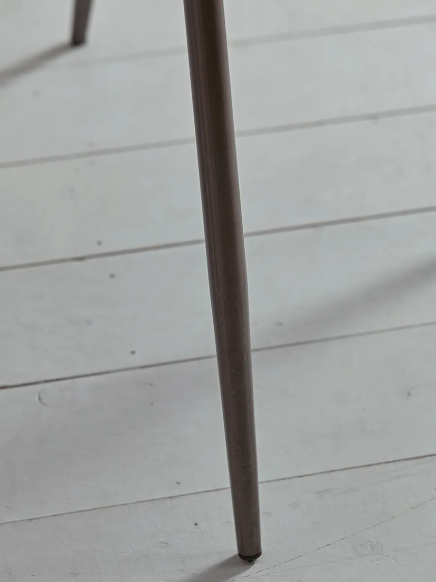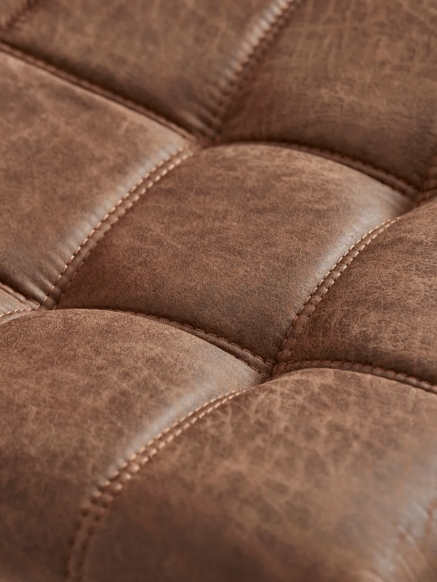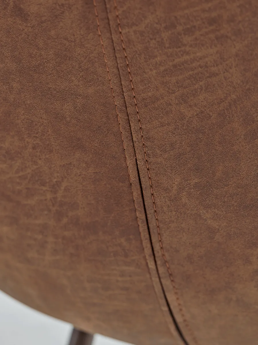 With a sleek, simple silhouette and a comfortable seat upholstered in faux leather, our set of two factory style dining chairs in tan will make an edgy addition to your kitchen décor.