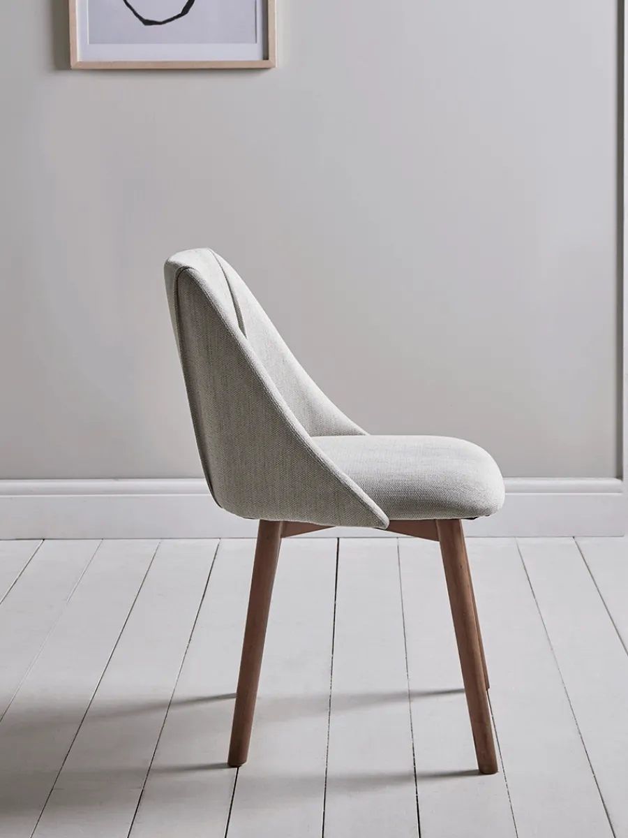 The design of our upholstered dining chairs nods to Danish mid-century principles and their simplicity and neutral-tone deliver an understated style to any dining table.