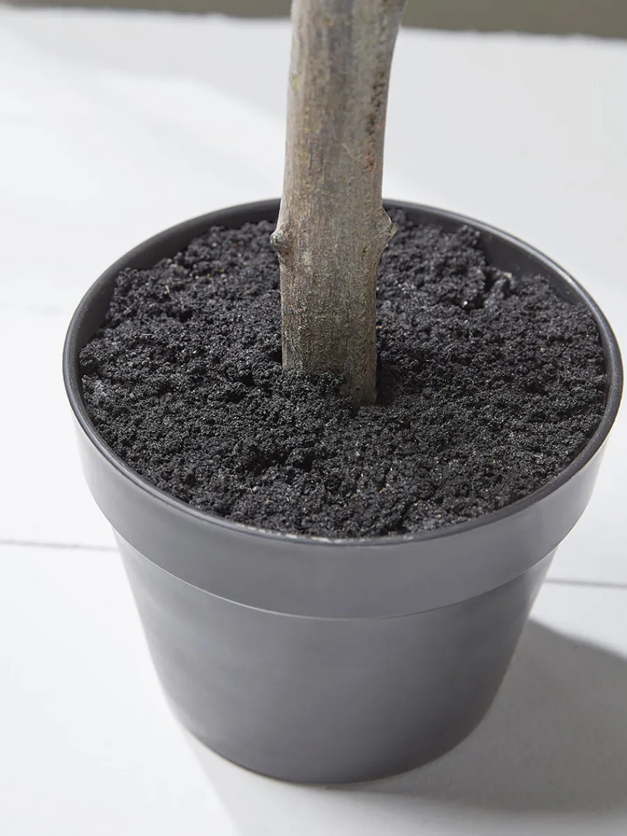 Sprouting from a life-like trunk, the stems are covered with authentic looking grey green leaves. The tree is based in a black plant pot which will sit easily in one of our indoor planters.