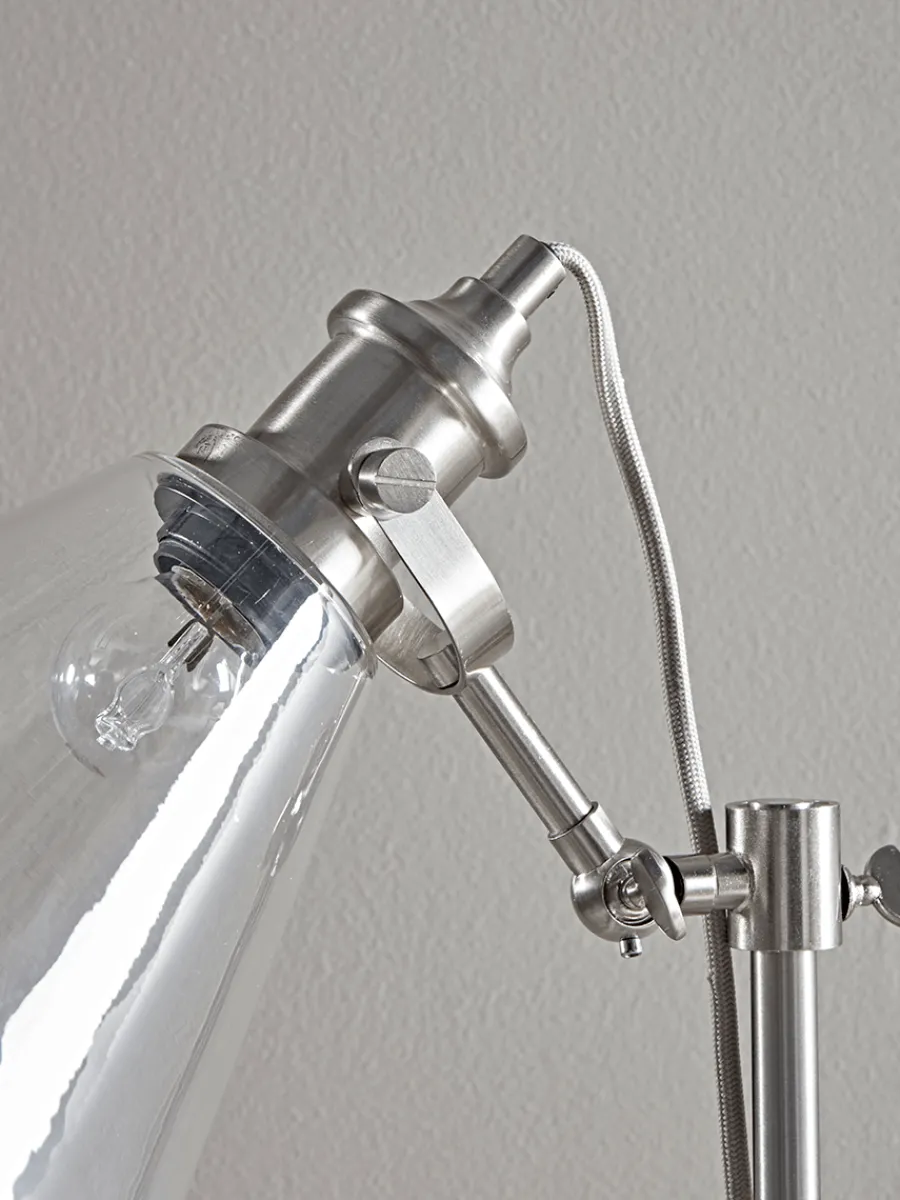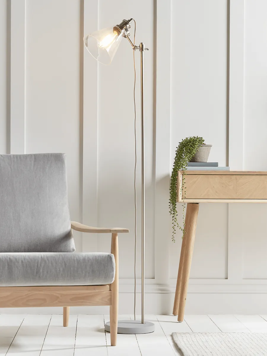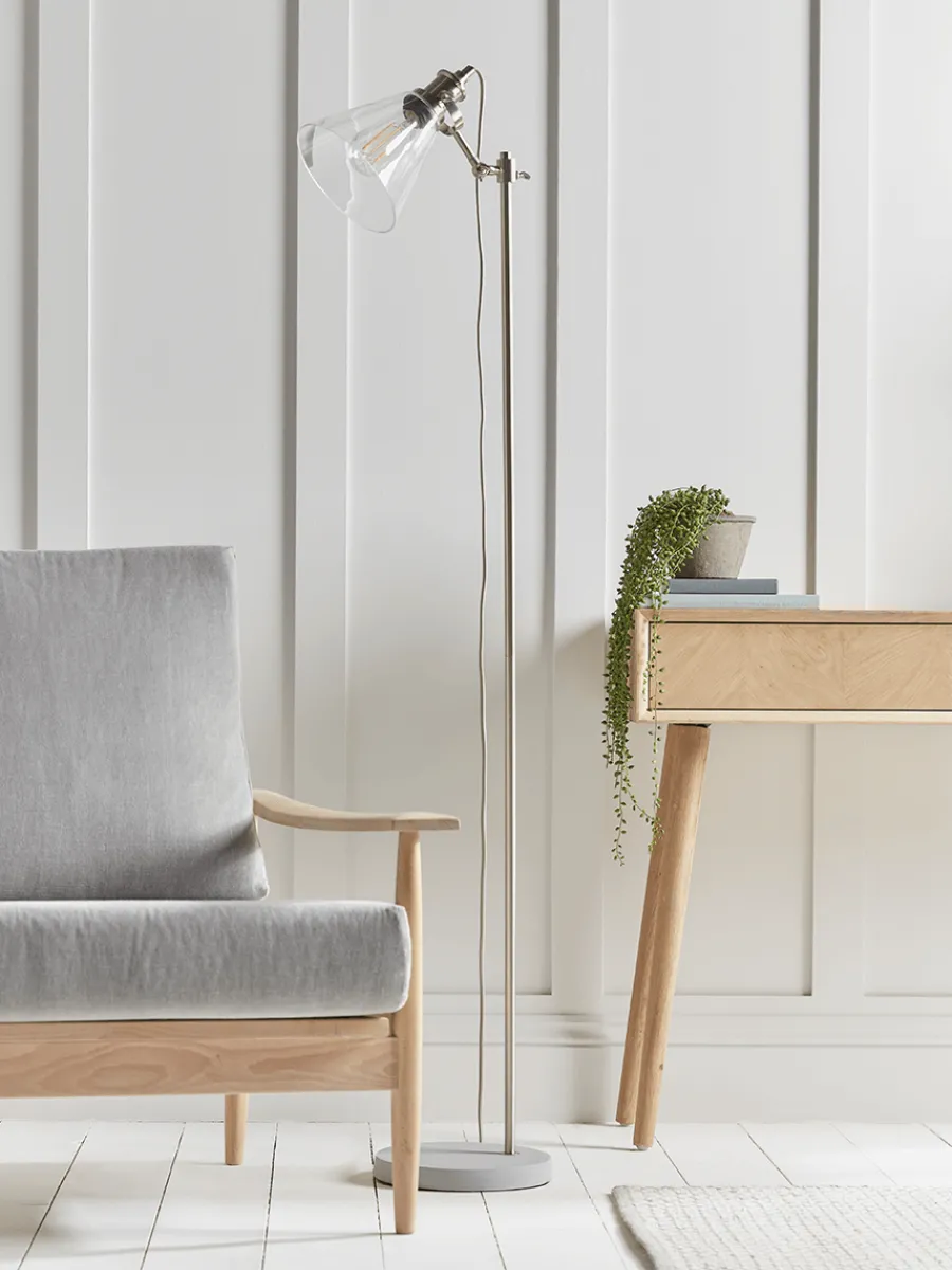 With a pivoted shade, this tall floor lamp is perfect for brightening up dark corners and works well as an oversized task light for your favourite reading nook.