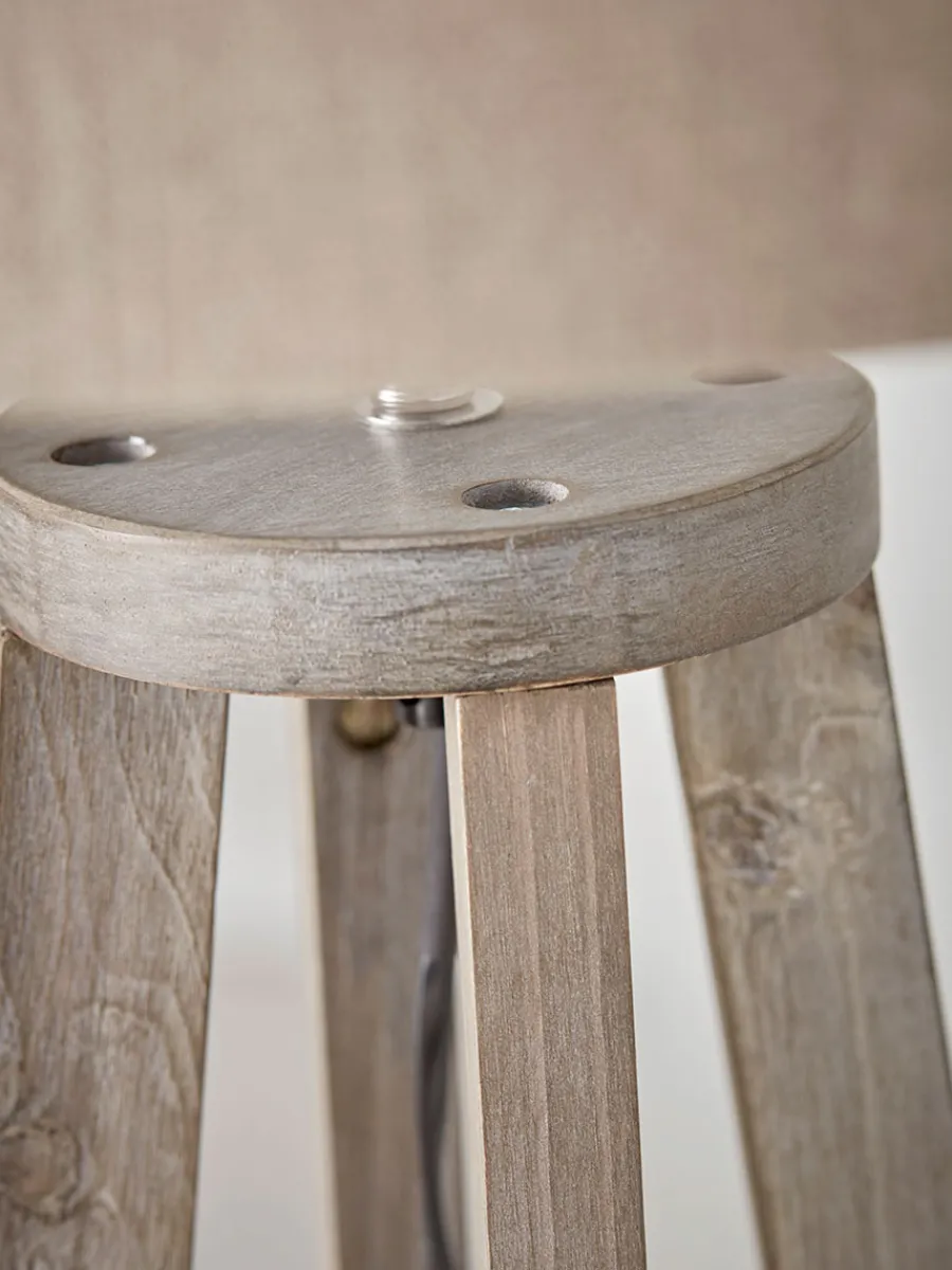 With a grey washed wooden tapered frame and natural toned fabric drum shade, this floor light is ideal for standing beside a favourite armchair to form a cosy reading nook.