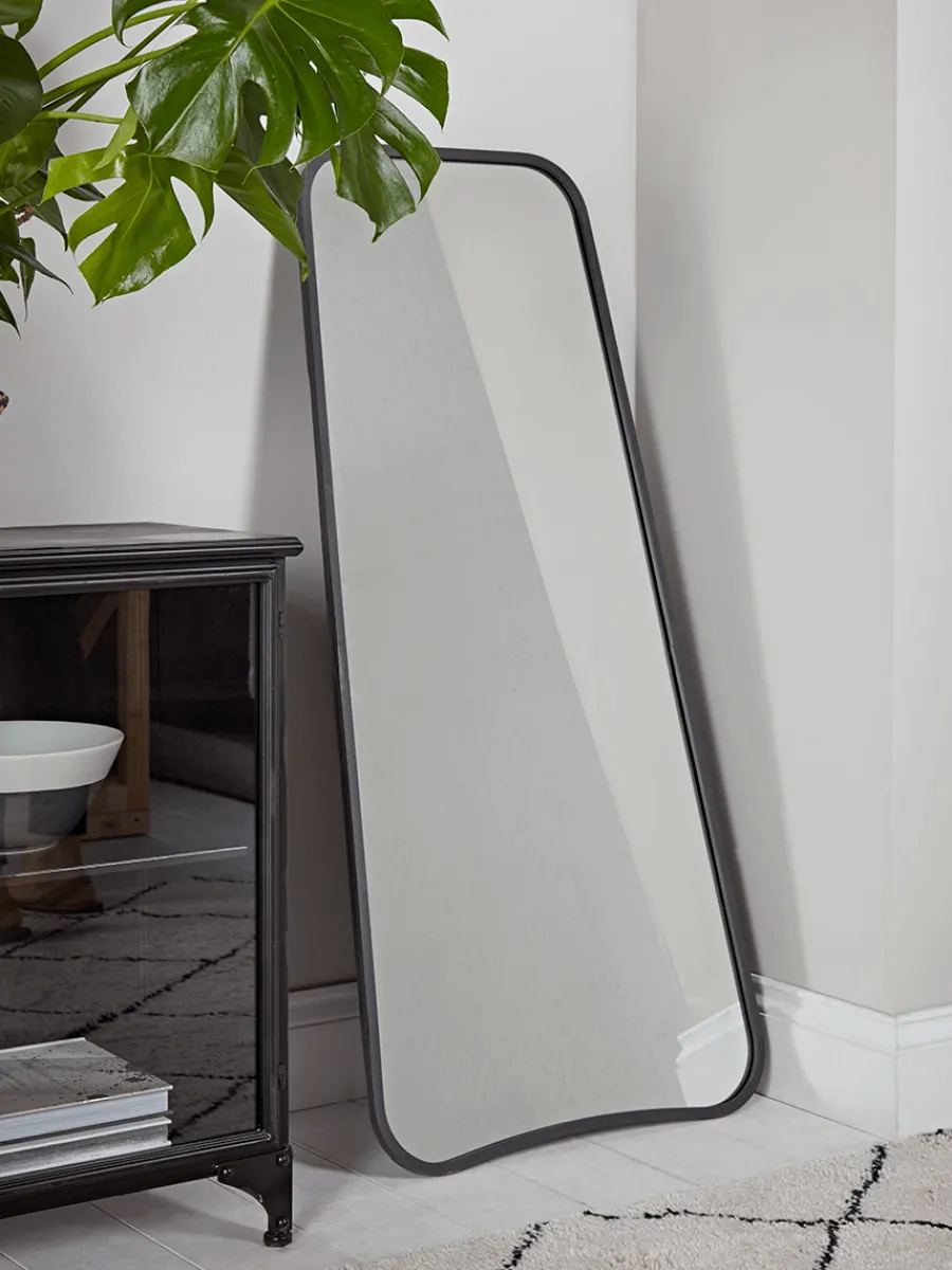 A beautifully feminine twist on traditional full length mirrors, this simple, elegant design has a statement black frame and curved bottom edge.