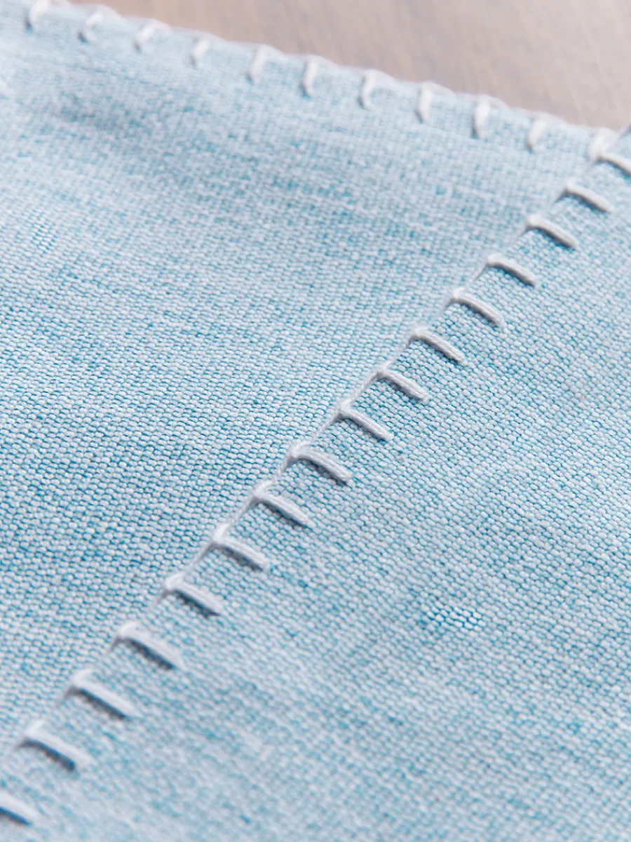 Full of gentle charm, this set of placemats features a rustic blanket stitched edge in white to contrast against the soft powdery blue of the cotton.