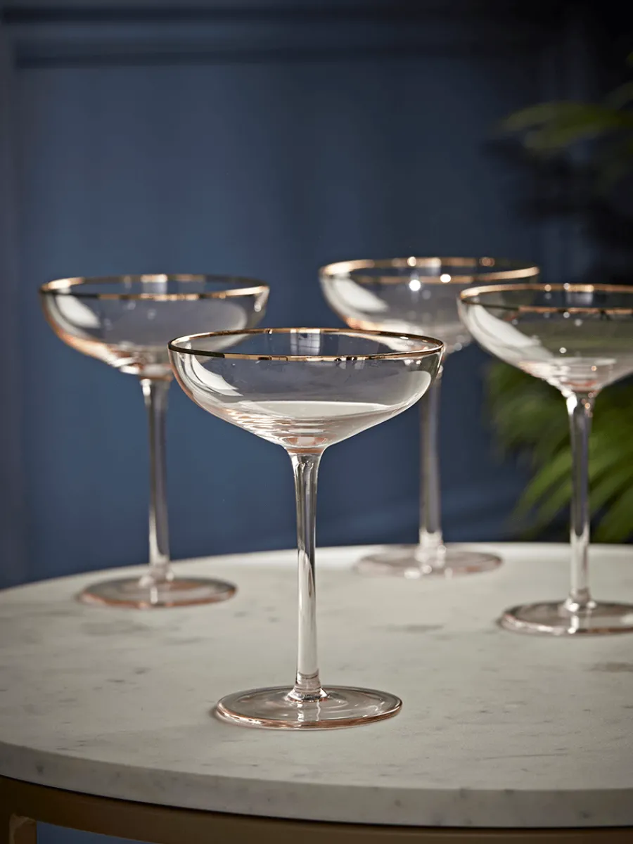 Add a little luxury and elegance to your glassware with our sublime Gold & Blush Champagne Coupes. With slender stems and a tasteful gold coloured band around the rim of each glass, they are sure to bring a refined luxe feel to your evening tipple.