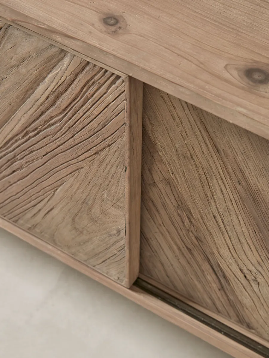 The beauty of natural wood has truly been allowed to shine in our Halden Media Unit where the tones of grain range from palest honey to grey on the diagonal striped parquet effect front.