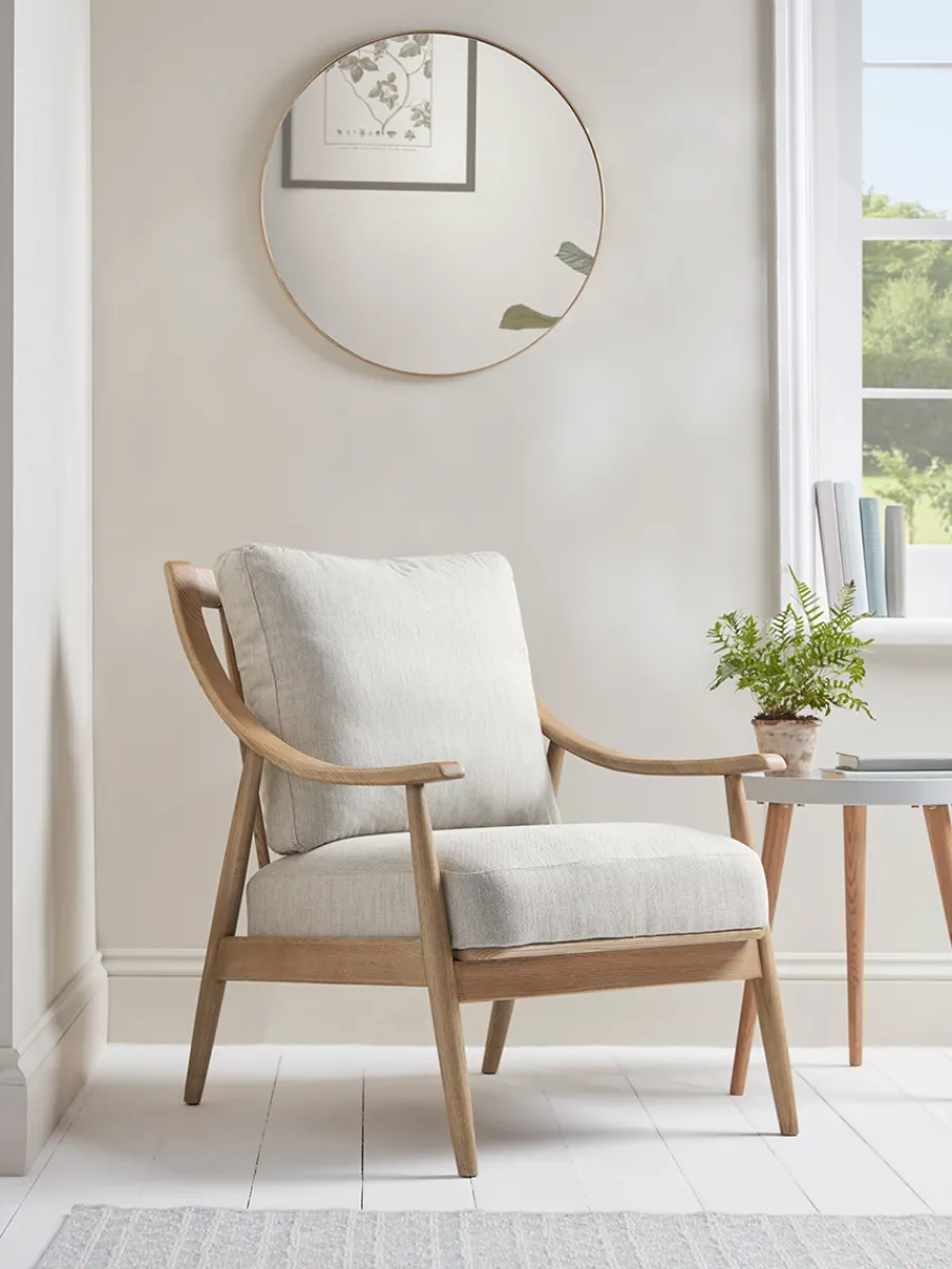 Clean cut, but still comforting, our mid-century style curved armchair offers classic styling in an occasional chair that will refine any setting.
