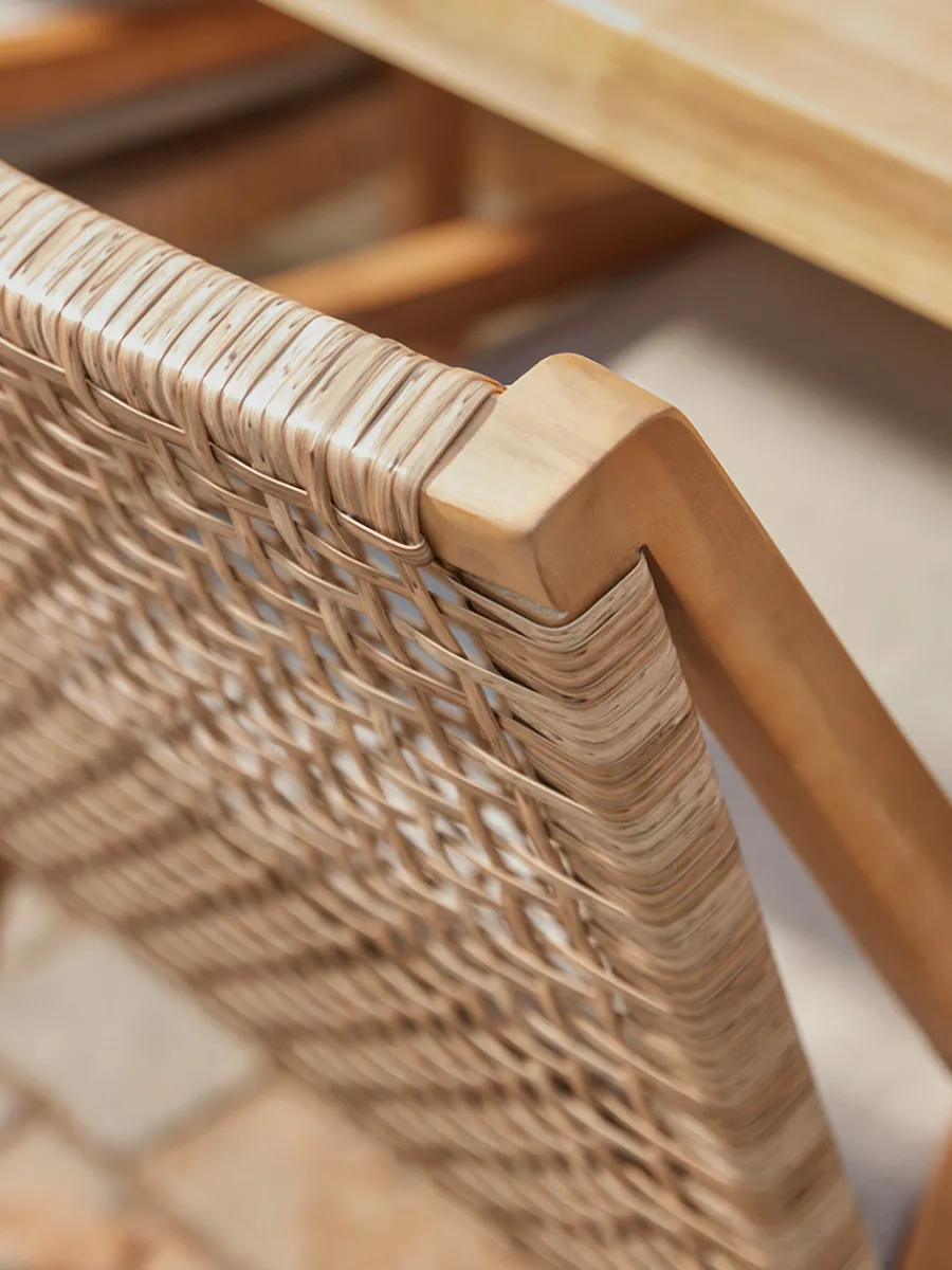 Contemporary styling, harmoniously combined with traditional looking materials such as acacia wood and rattan give our Amalfi Dining Chair standout appeal.
