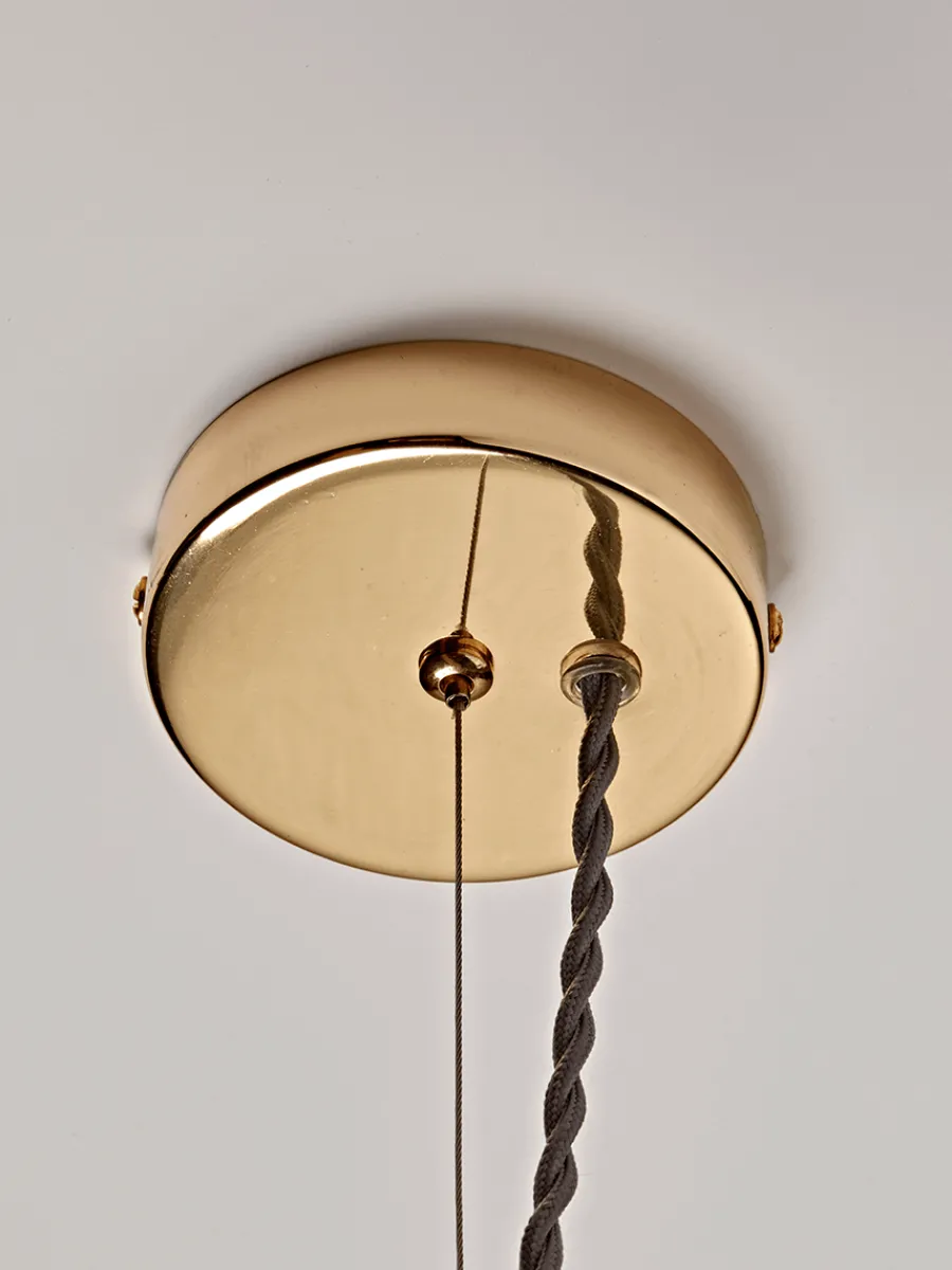 Each shade has a blue inner to enhance the light and a slim brass top for a metallic glow.