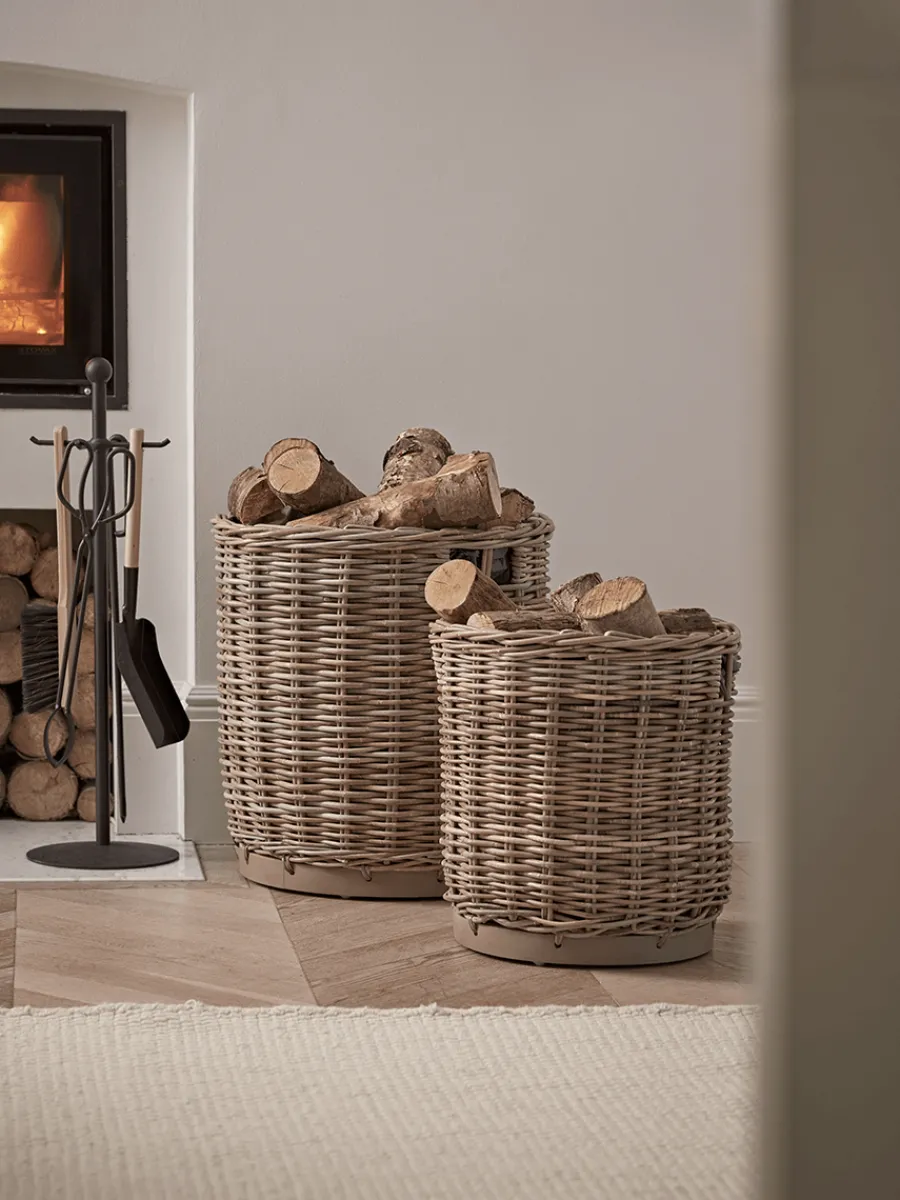 Made from woven natural rattan, our pair of round planters make a lovely alternative to traditional terracotta pots, but they also make perfect log baskets, adding a lovely rustic touch to the hearth.
