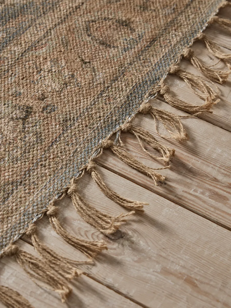 In faded neutrals and blues, this rug is finished with delicate tassels for a soft and laid-back look that inspires a restorative atmosphere.