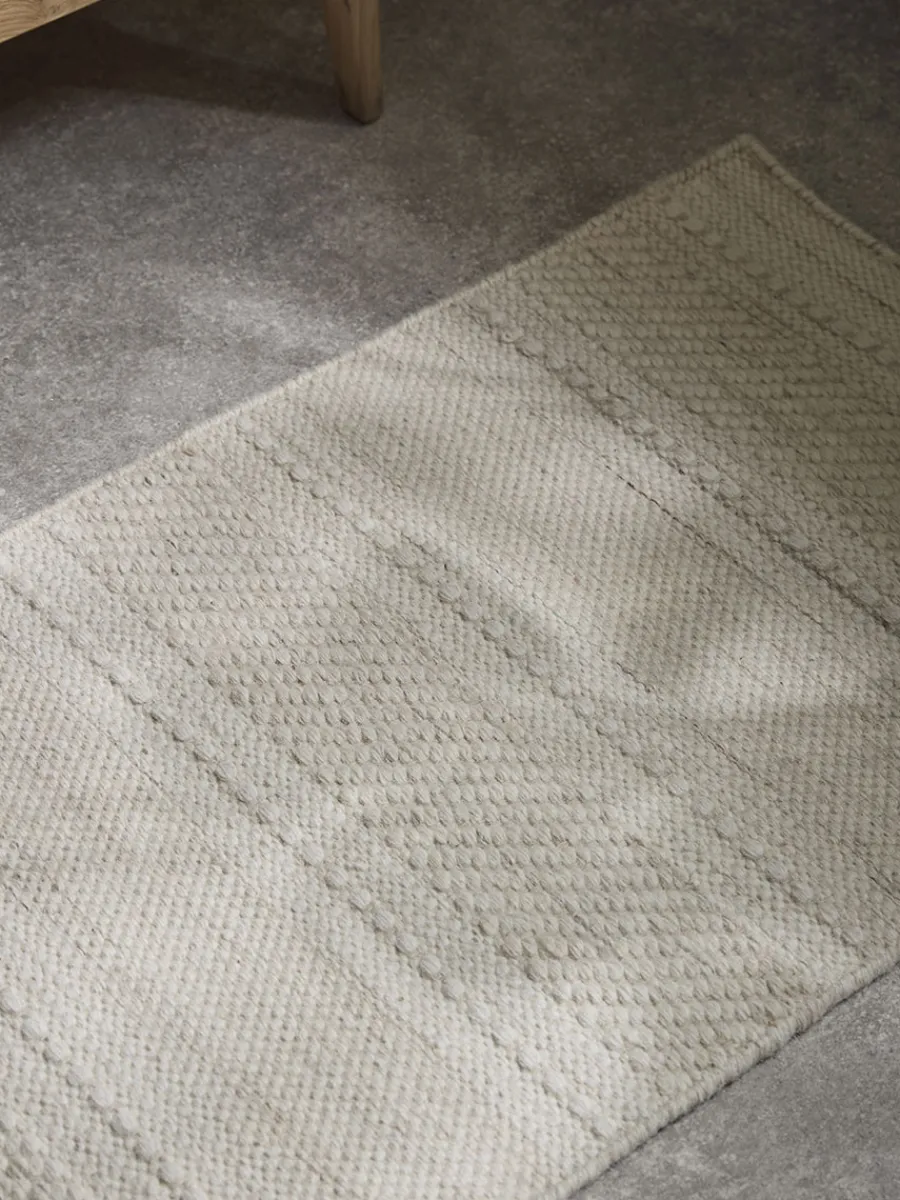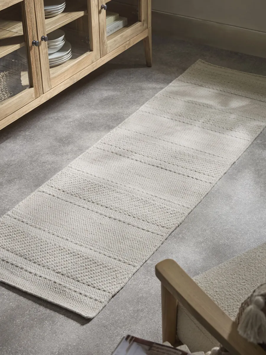 In a multi-tonal natural cream wool, our Eremo Runner is defined by the stripes and chevrons which have been handwoven into the surface as part of the design.