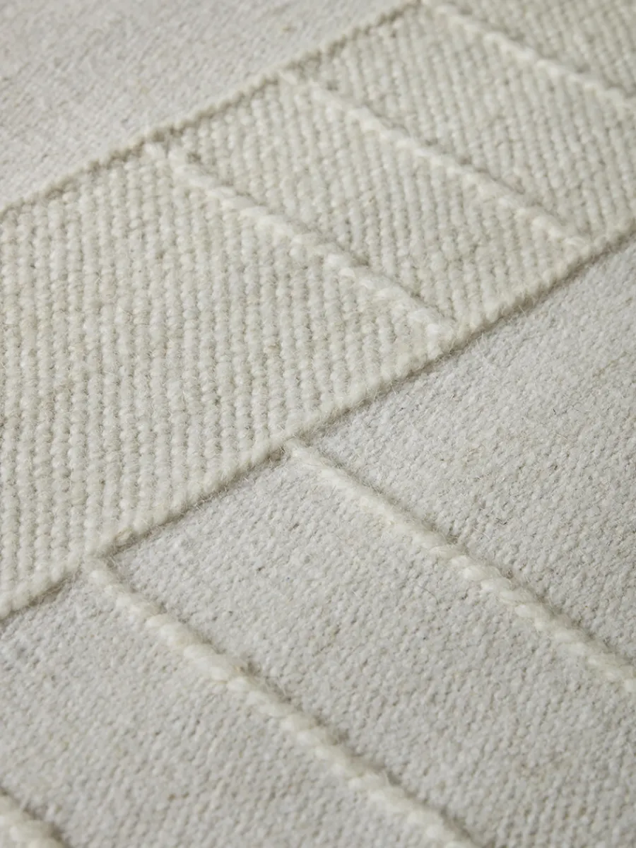 Gennadi is a flatweave rug in a single pale cream colour, made more attractive by panels of different weaves and raised borders which give an interesting textural quality.