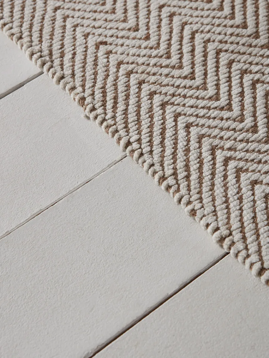 Hand woven in mixture of cotton and jute for a soft finish, this hallway runner features a smart chevron stripe.