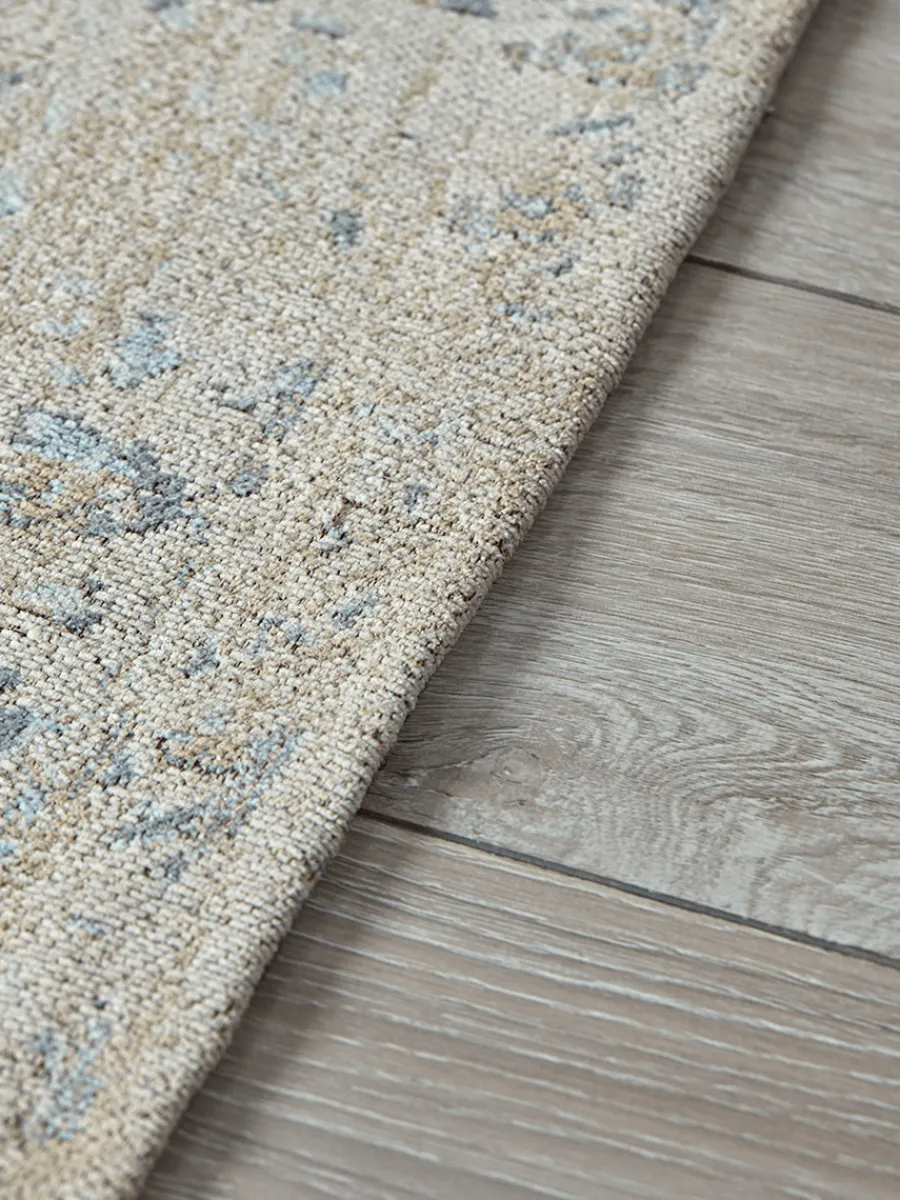 Woven from cotton chenille with a vintage-inspired faded design, our muted blue-grey rug will anchor any scheme – be it traditional or modern – by a sense of grandeur and authenticity.