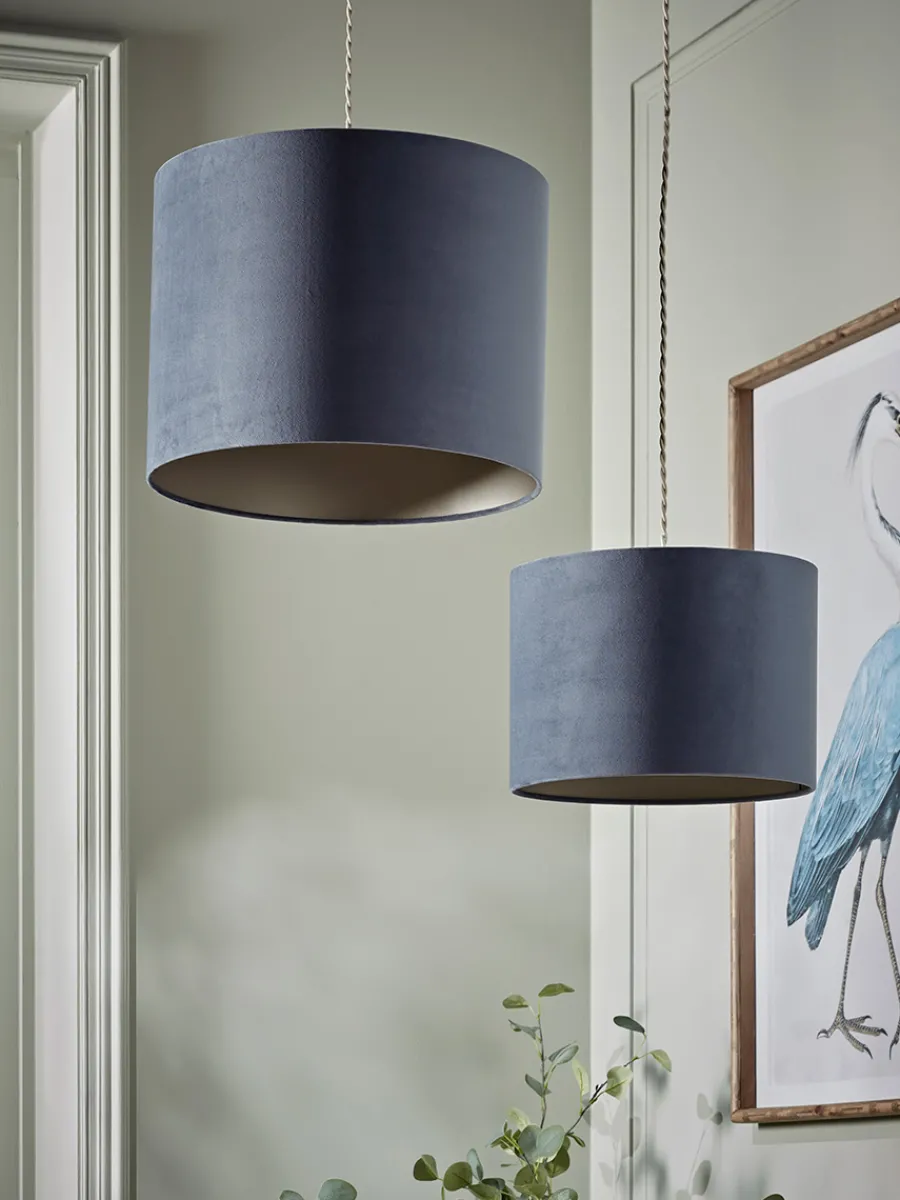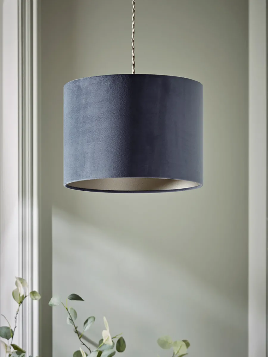 Add a touch of luxury to your space with our velvet lampshade in nordic blue.