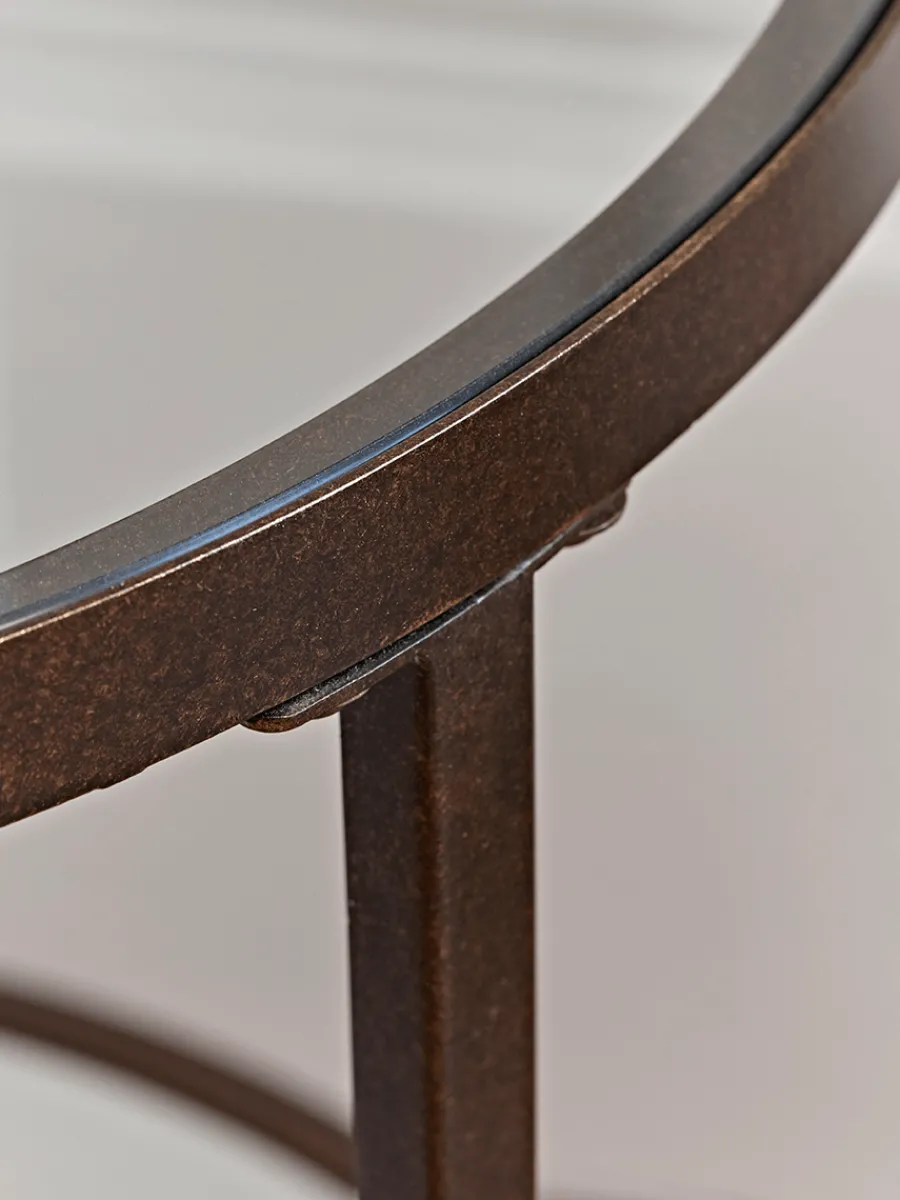 Petite and stylish, our elegant side table features a metal frame and glass top, with a mirrored shelf for storing books or displaying trinkets.