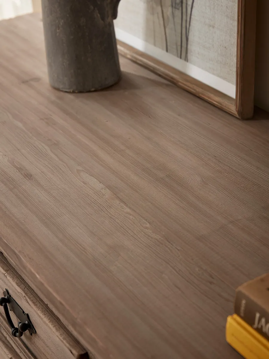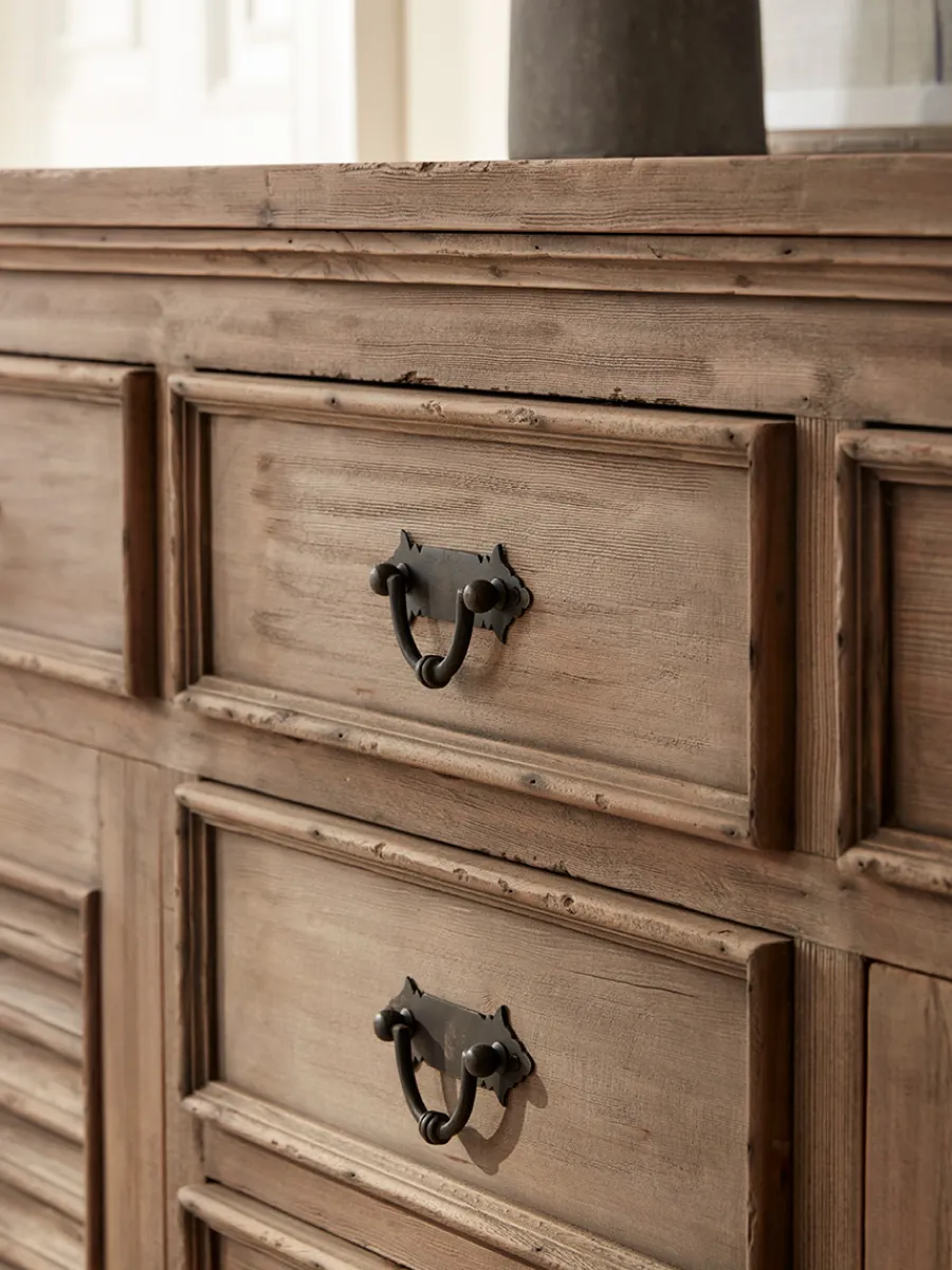 Sideboard made of reclaimed pine with metal hardware.