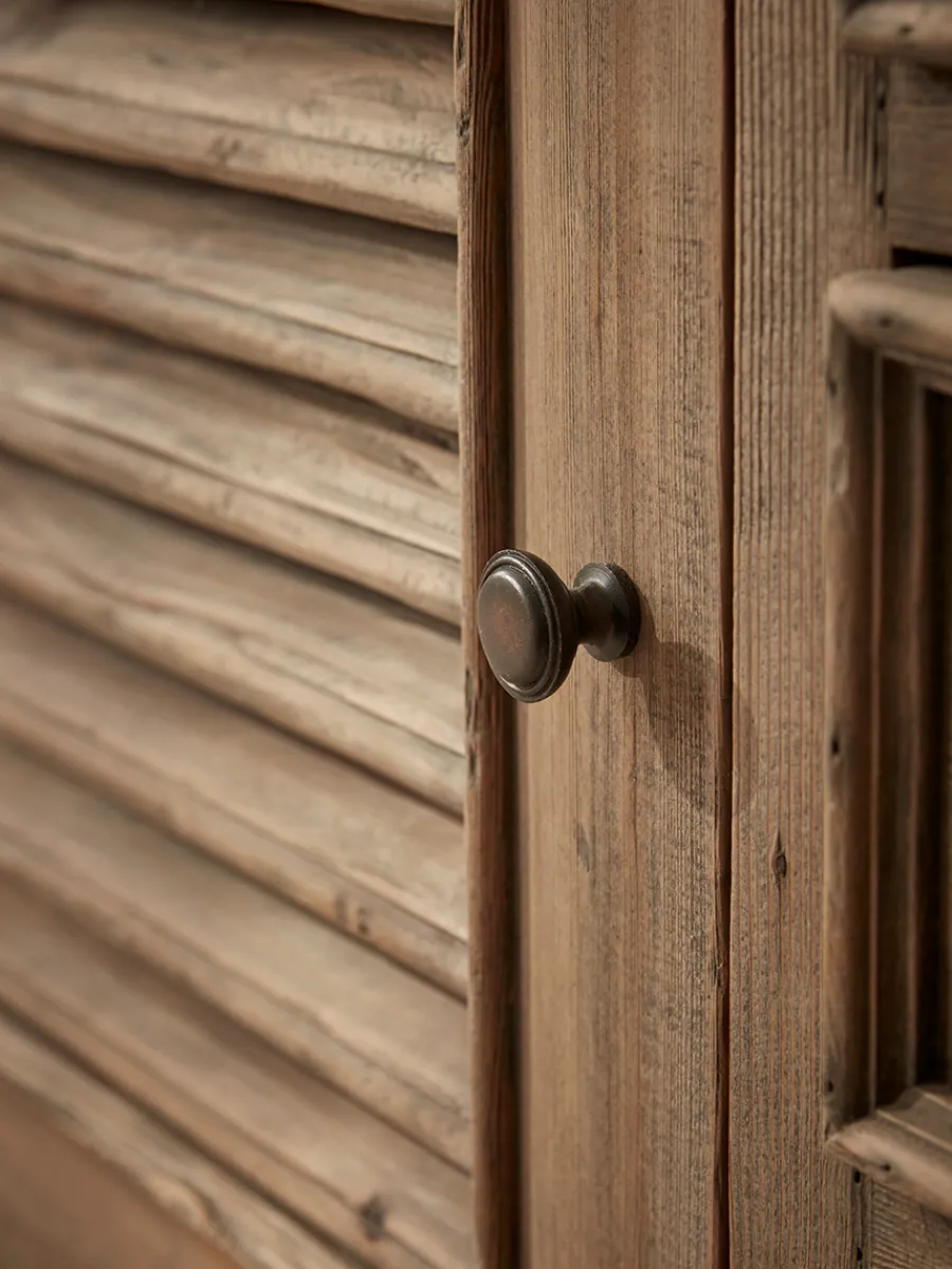 Versatile, as well as stylish, this sideboard offers impressive storage potential behind two louvred cupboard doors and in six drawers. Rustic metal hardware in the form of drawer pulls and door knobs completes the look.