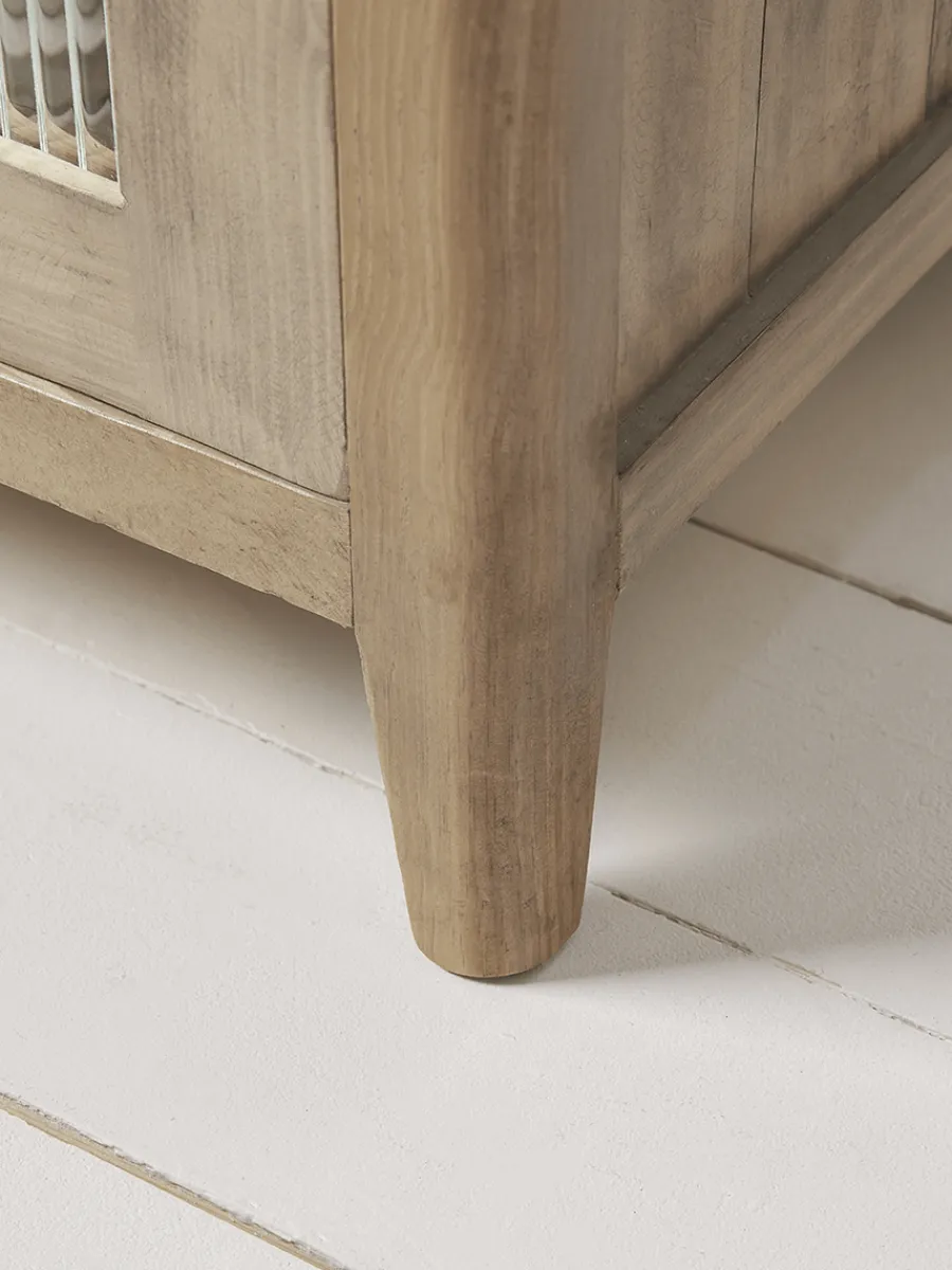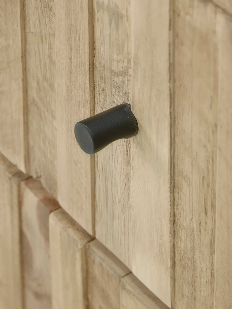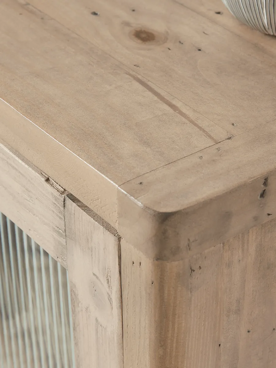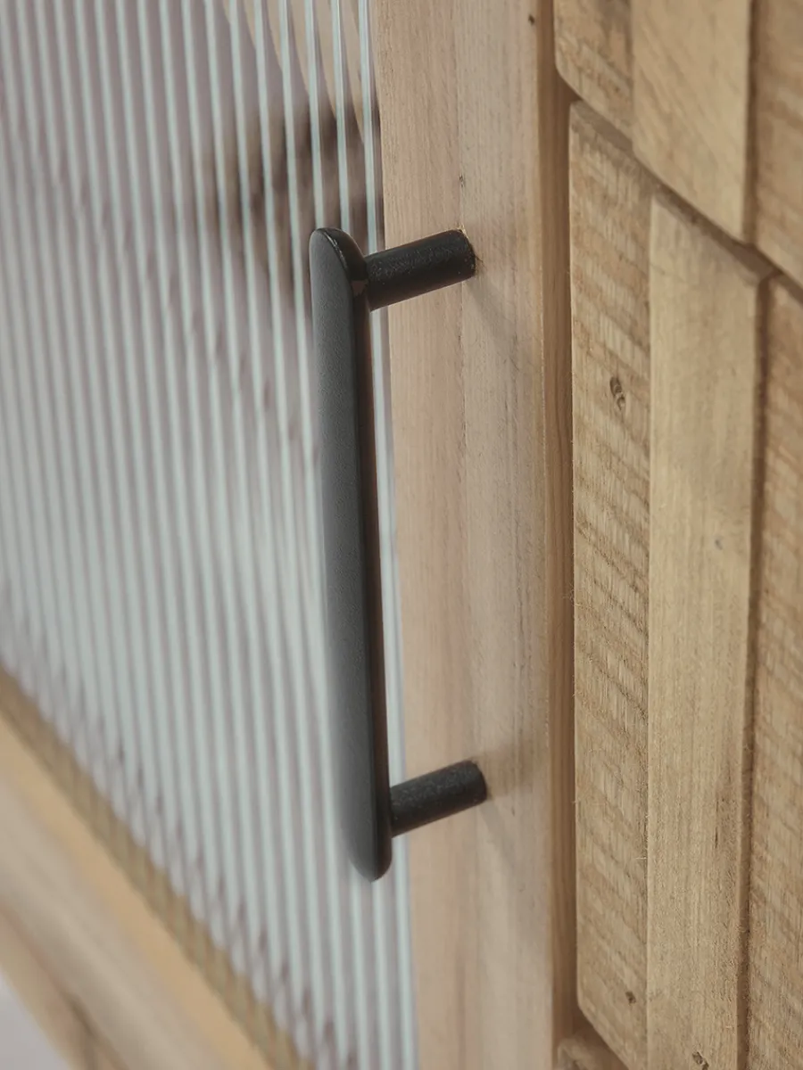 In a striking mix of industrial elements from woodblock drawer fronts to reeded glass doors and iron hardware, our Odense collection of furniture will bring texture and warmth to your home.