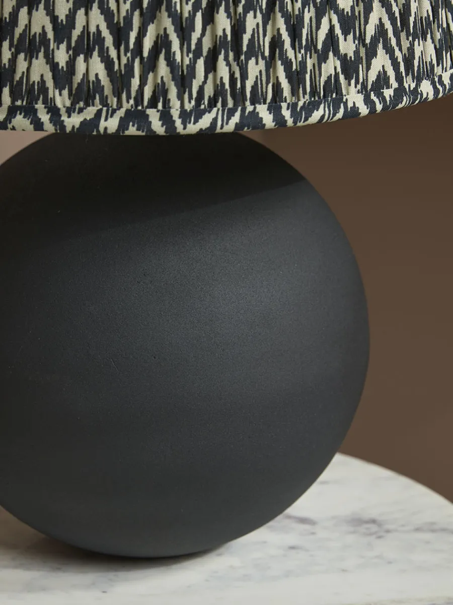 Gently warm your home and add a welcoming glow to your space with our Black Chevron Table Lamp.
