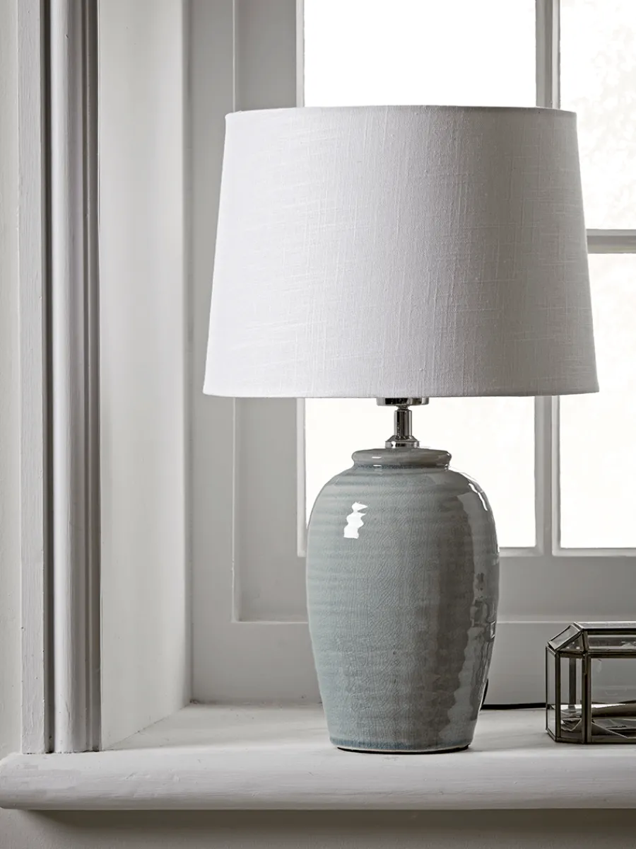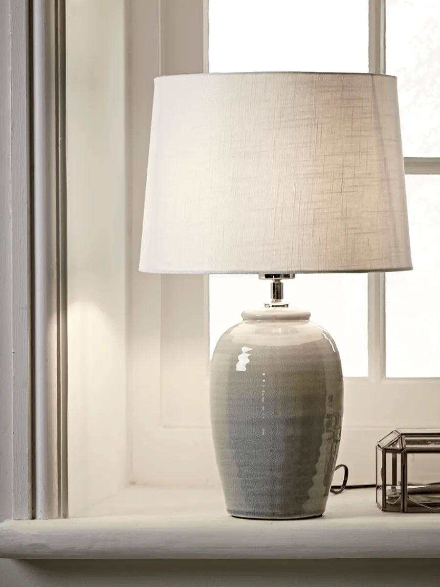 Simple and elegant with a muted grey crackle glaze, our slim table lamp is a subtle way to introduce colour into your home.