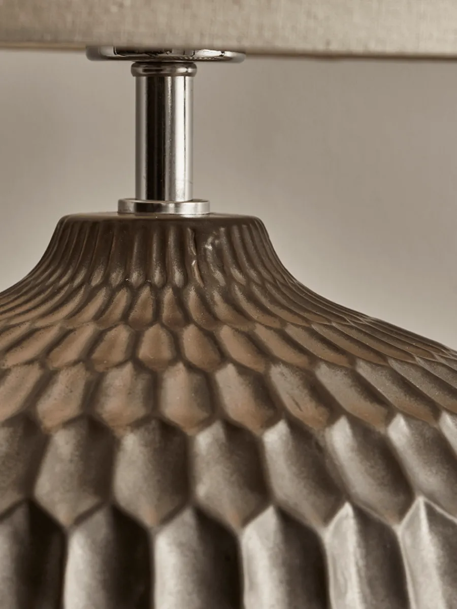 Each ceramic base is finished in soft bronze, with an embossed honeycomb pattern.