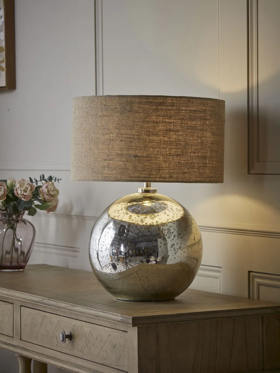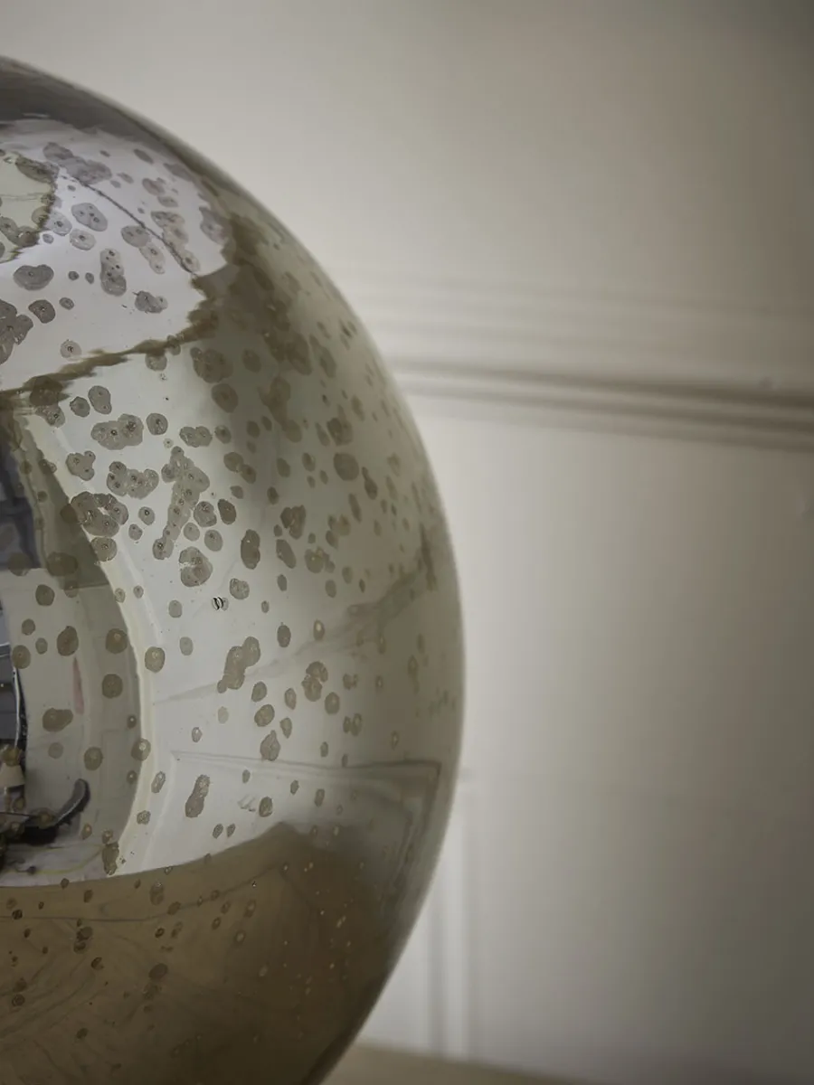 In a striking silver, our Round Mirrored Glass Table Lamp adds an elegant shine to your space. Its bright base, with a slight aged effect, allows the light from the bulb to reflect, creating a warming glow around your space.