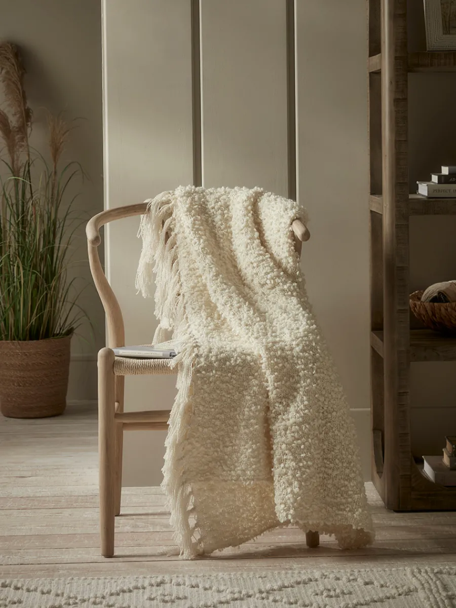 In neutral tones, this throw has a boucle texture and tassel detailing, perfect for placing over your armchair or sofa in a laid-back fashion for a relaxed and casual style.