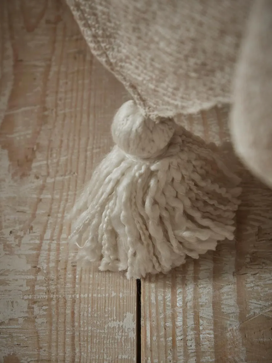 This supersoft throw is finished with a border of chunky white tassels to add a flamboyant touch wherever you choose to style it.