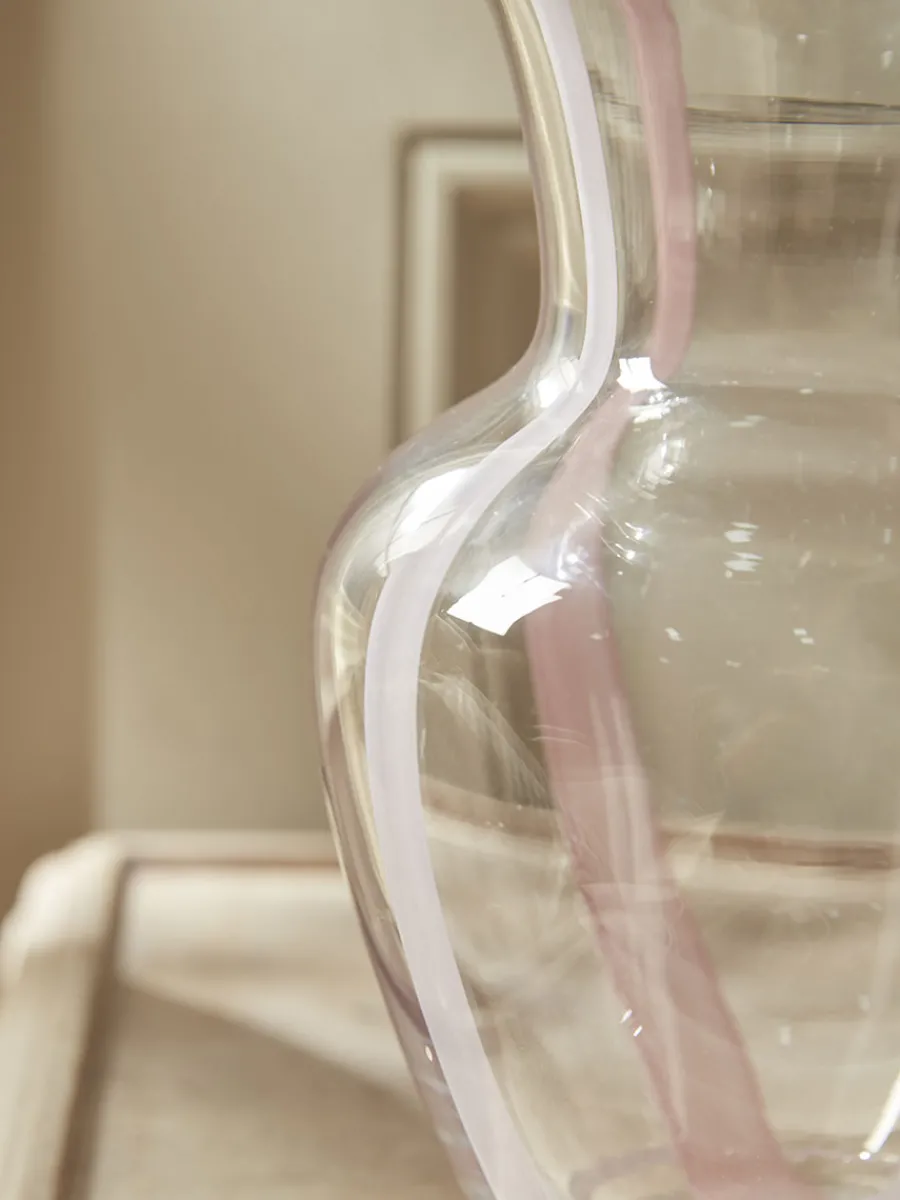 In two tones of pink, the vertical lines add a subtle pop of colour to your space, balancing well with the elegance this vase exudes.