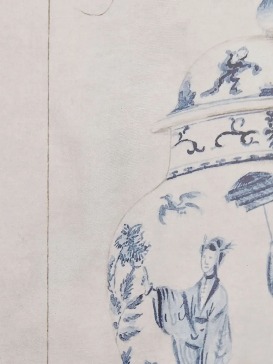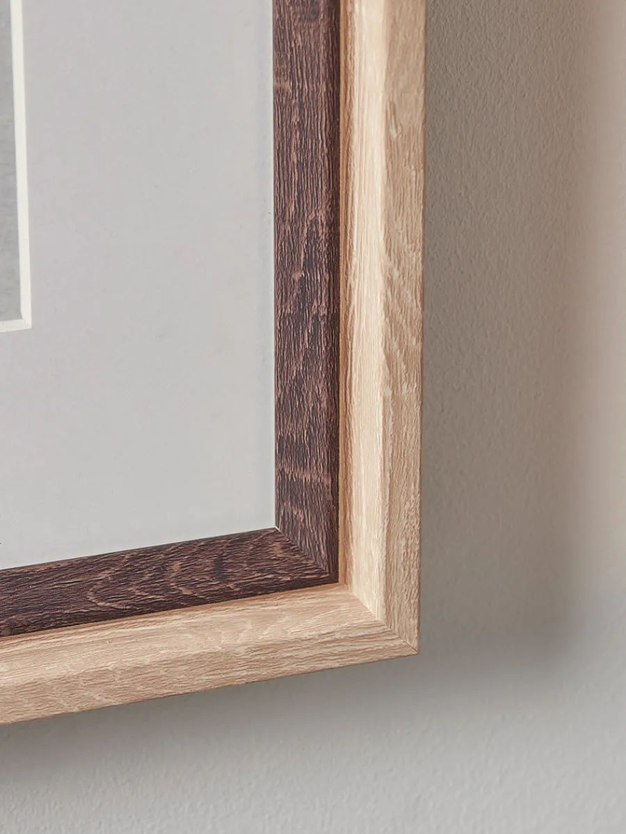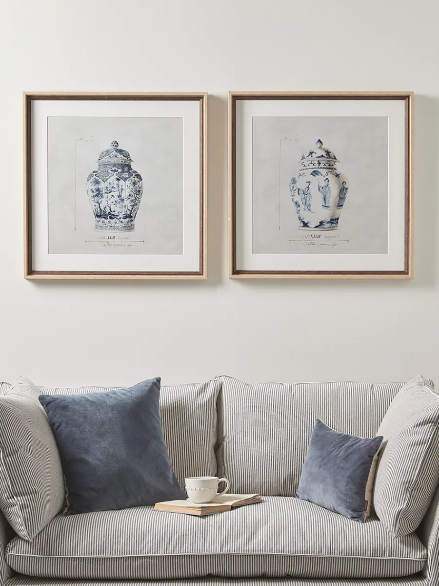 Featuring images of classic blue and white china ginger jars, the frames are a grain rich mixture of light and dark natural wood for a statement finishing touch.