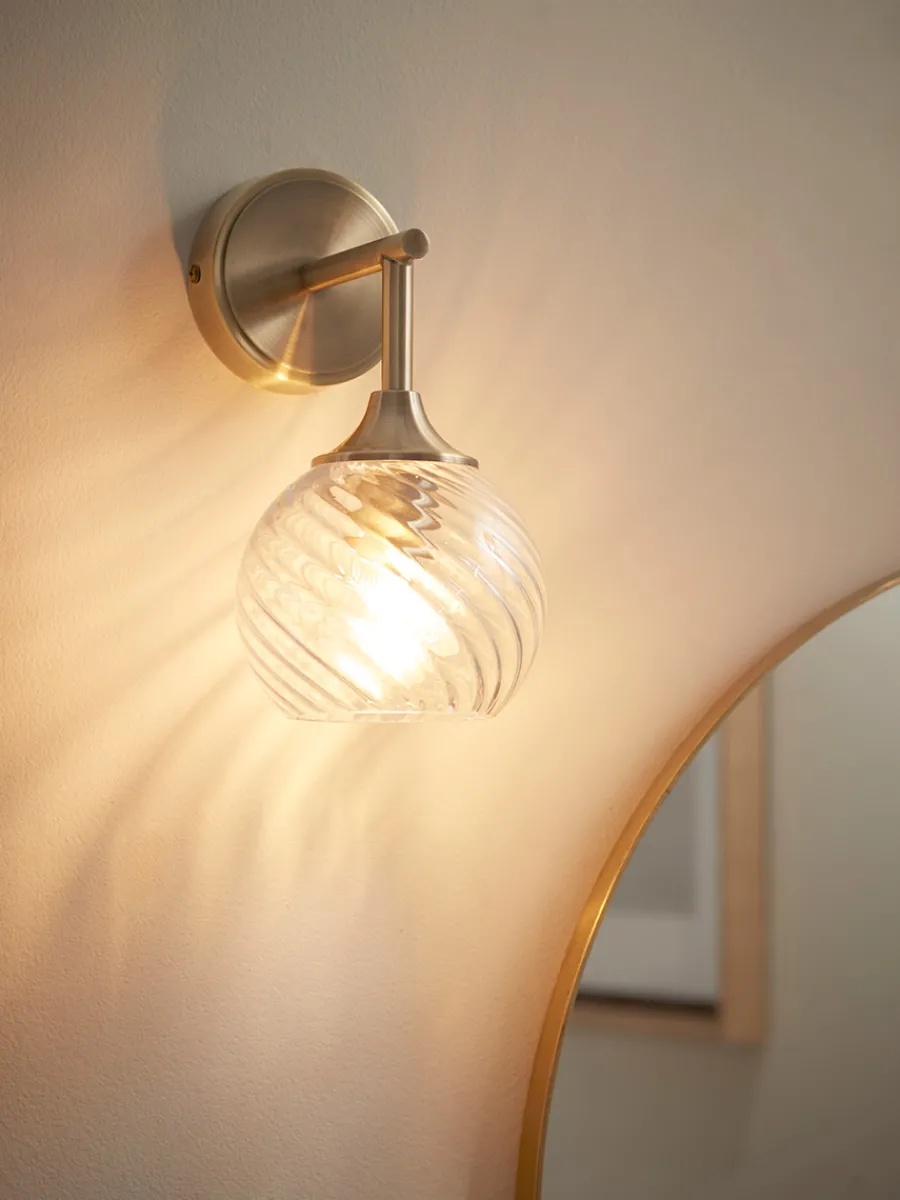 Ideal for adding a subtle hint of luxury, our Vaduz Wall Light has a brass plated finish in mellow antiqued tones. In combination with the swirling pattern to the clear glass shade, you can be assured of a sophisticated look that will elevate the lighting scheme in both contemporary and traditional homes.