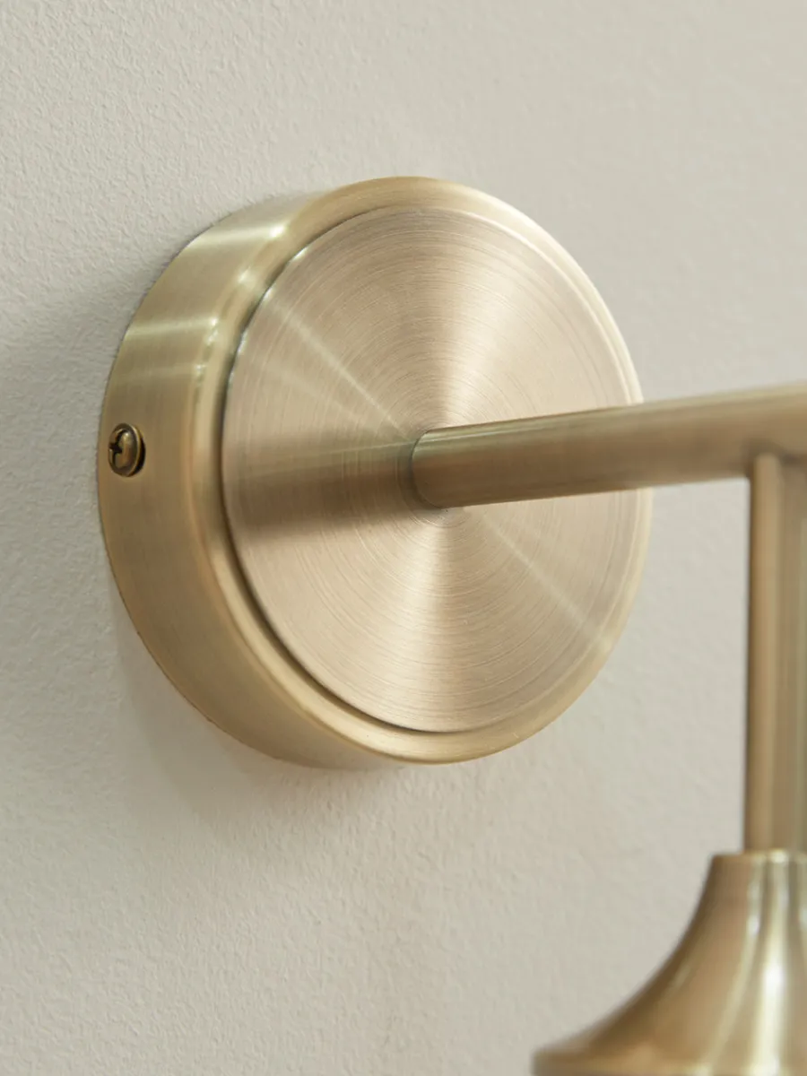 Metal wall light with brass plating and rippled glass shade.